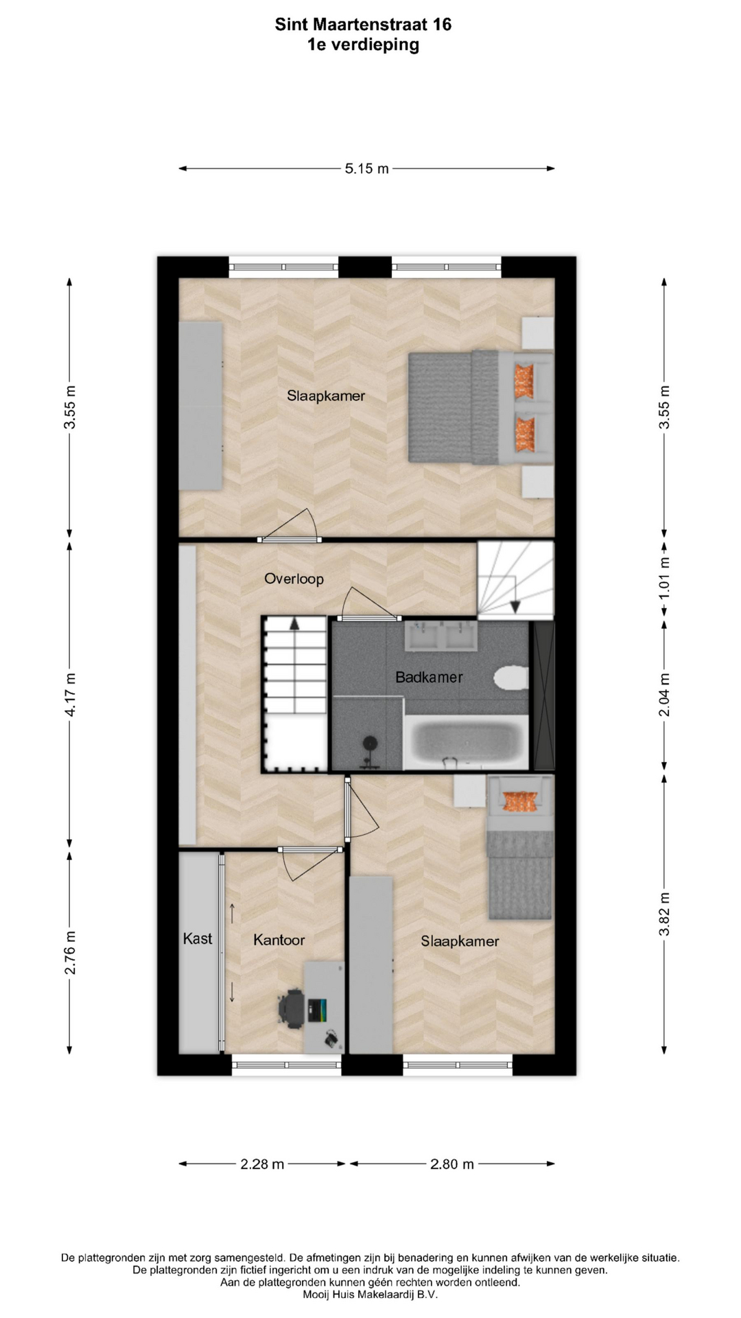 - Beide andere slaapkamers zijn ook volwaardig van formaat. Eén van de slaapkamers wordt momenteel gebruikt als kantoorruimte, waarbij de vaste kast zorgt voor voldoende opbergruimte! De andere slaapkamer is ook ruim van formaat en beschikt, net als de andere slaapkamer, over een laminaatvloer en neutraal afgewerkte wanden