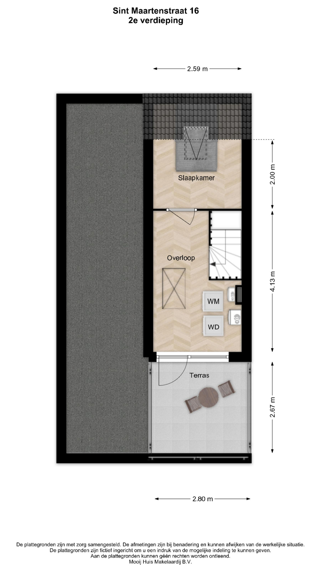 - Via de loopdeur vanaf de overloop is tevens het dakterras toegankelijk. Het dakterras is gelegen op het westen/zuidwesten, waardoor je hier heerlijk de hele dag van de zon kunt genieten. Daarnaast heb je een sfeervol uitzicht over de karakteristieke woningen aan de Wilhelminalaan en directe omgeving!