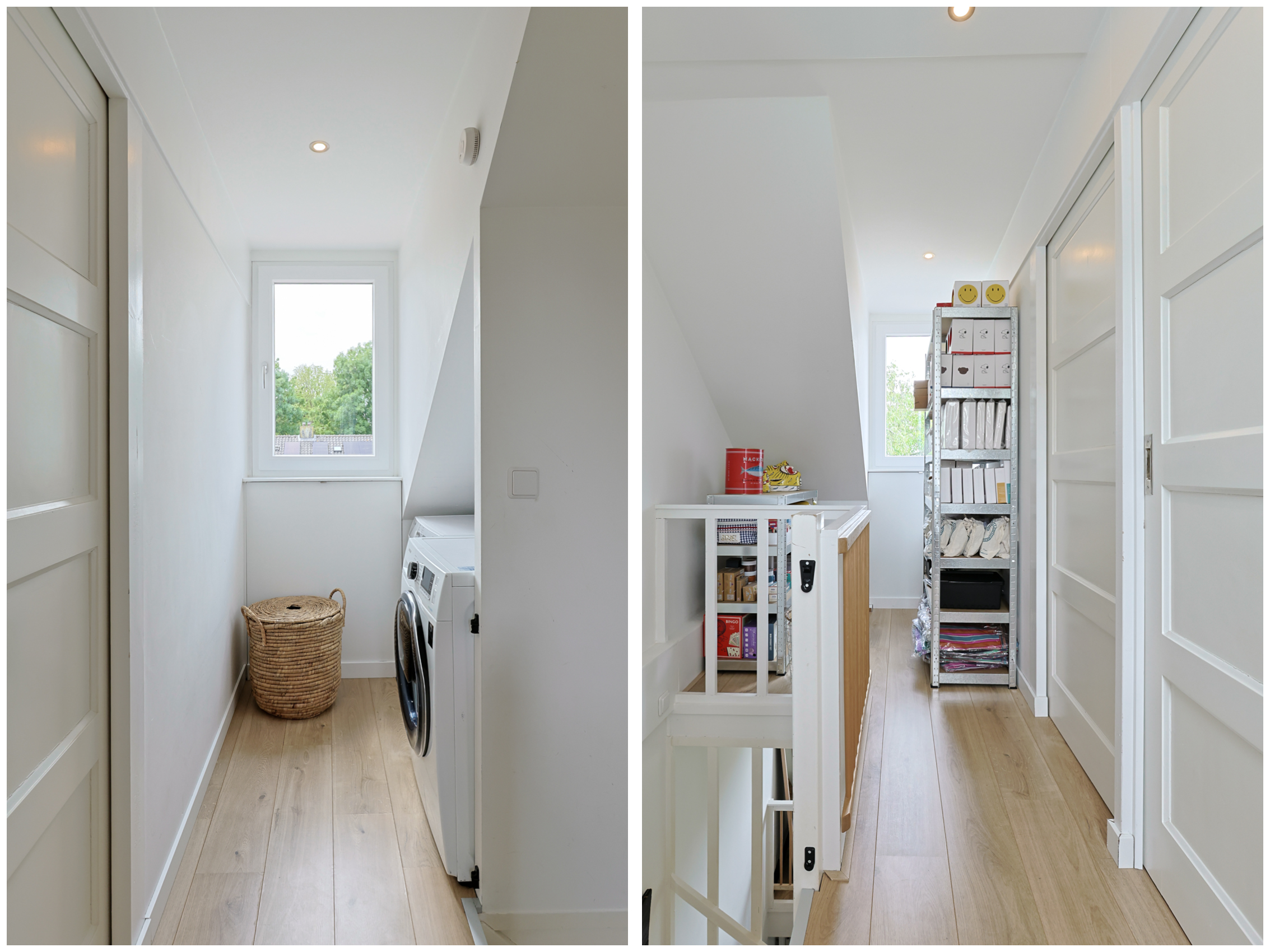 Op de tweede verdieping bevinden zich nog twee fijne slaapkamers met dakkapellen (2019) en veel lichtinval. Ook vind je hier de wasruimte en de recent vernieuwde cv. Extra handig: over de volledige breedte van deze verdieping is er volop bergruimte achter de schotten.