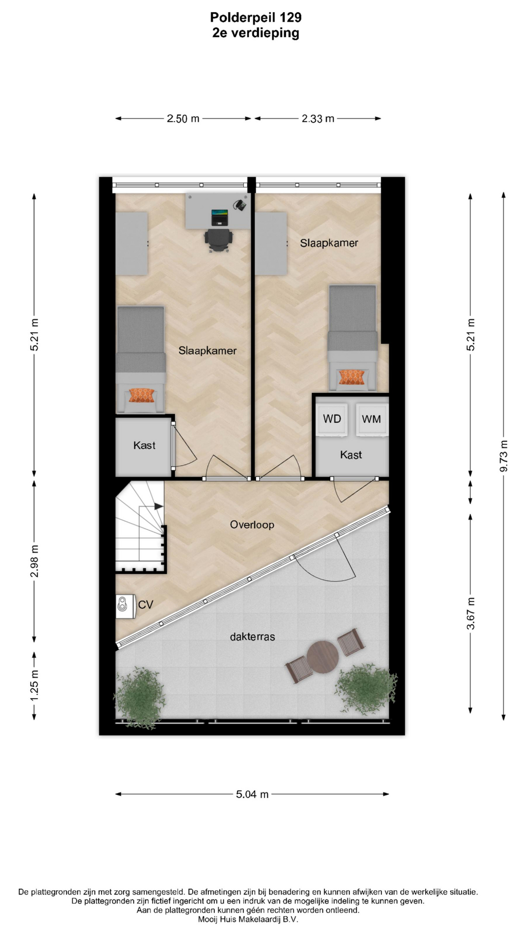 De gehele verdieping is voorzien van een nette laminaatvloer. Daarnaast biedt de overloop toegang tot een separate wasruimte voor wasmachine en droger. Als kers op de taart is er een ruim dakterras op het zuiden aanwezig, waar de zon bijna de hele dag te vinden is!