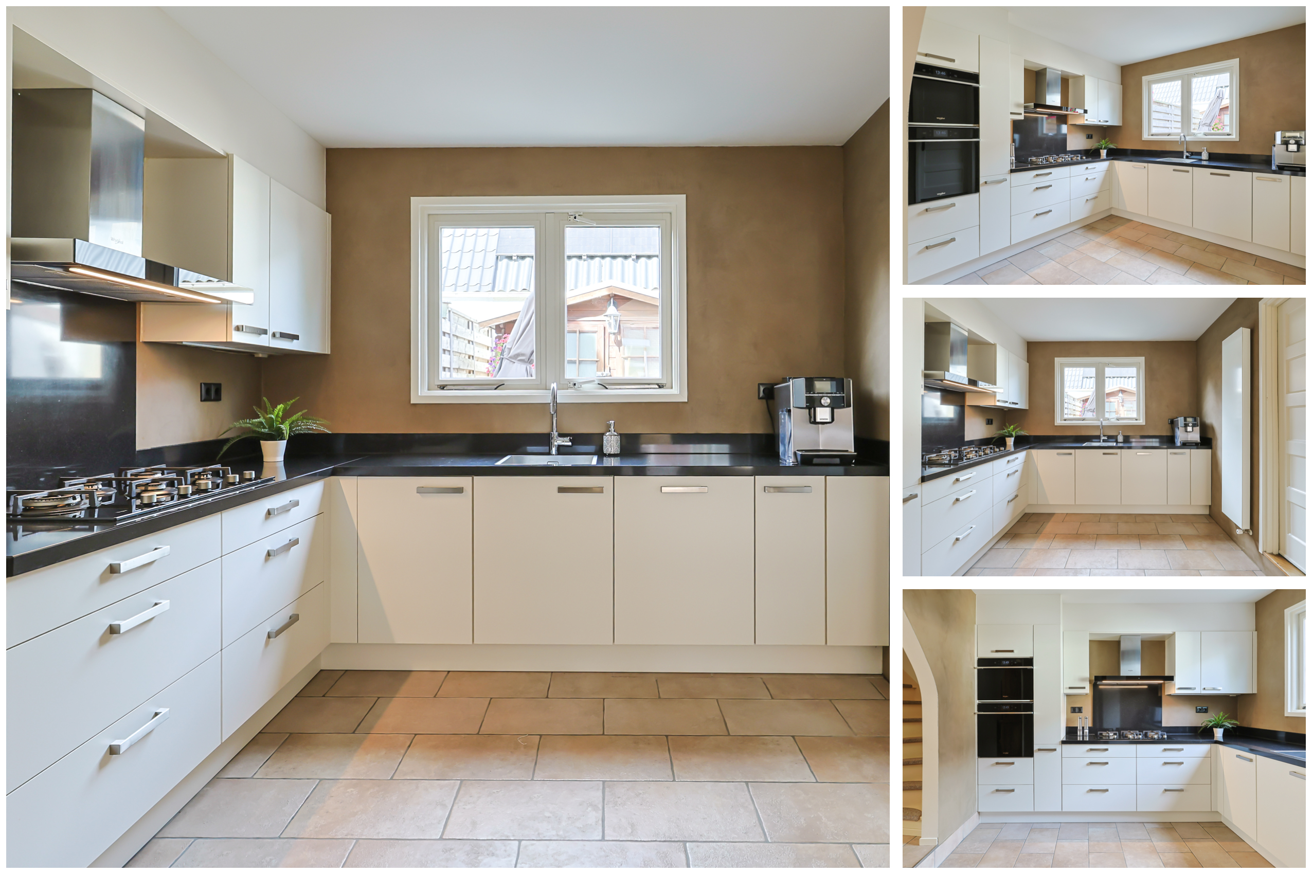 - De moderne keuken (2019) is voorzien van luxe inbouwapparatuur en een ruim werkblad in een L-vorm. Aan inbouwapparatuur is er onder andere een gaskookplaat, afzuigkap, combi-oven, stoomoven en vaatwasser. Ook is een praktische apothekerskast aanwezig