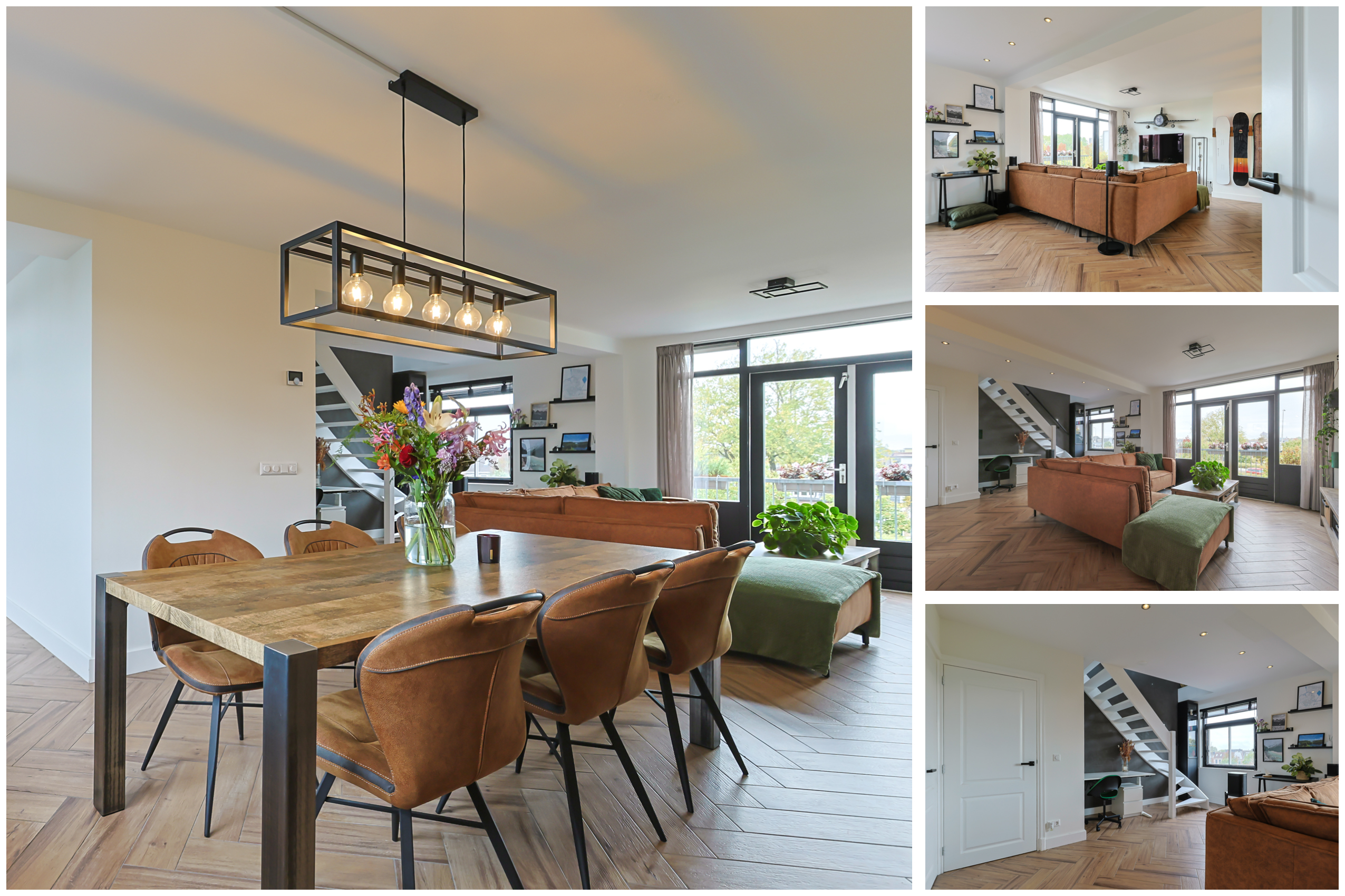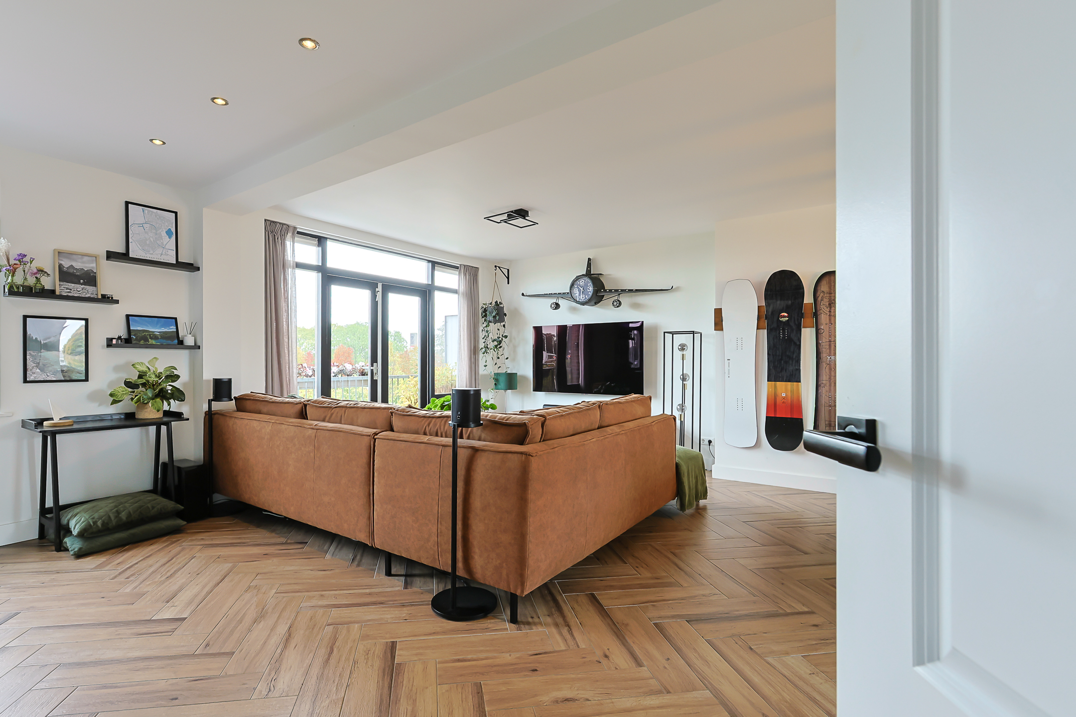 - De woonkamer is ruim en heerlijk licht door grote ramen aan weerzijden! Er liggen mooie plavuizen in visgraatmotief en de wanden zijn netjes en strak afgewerkt. In het plafond zitten op meerder plekken inbouwspots verwerkt. Er is volop ruimte voor een comfortabele zithoek en ruime eettafel