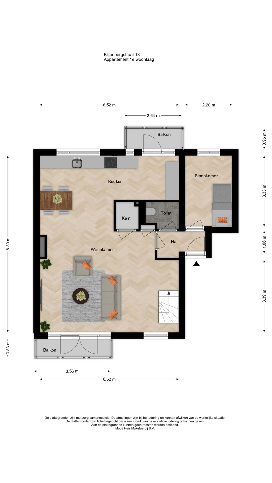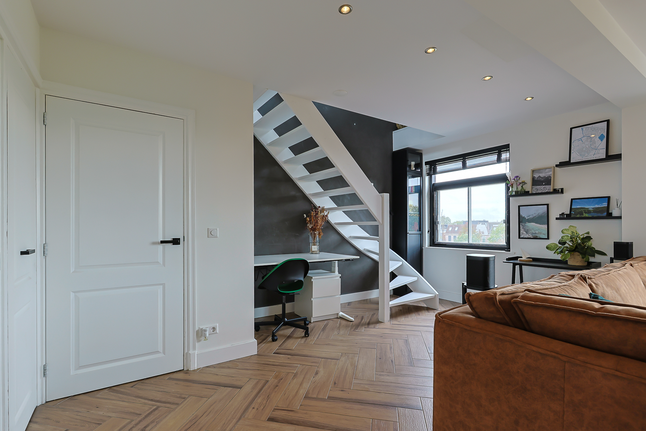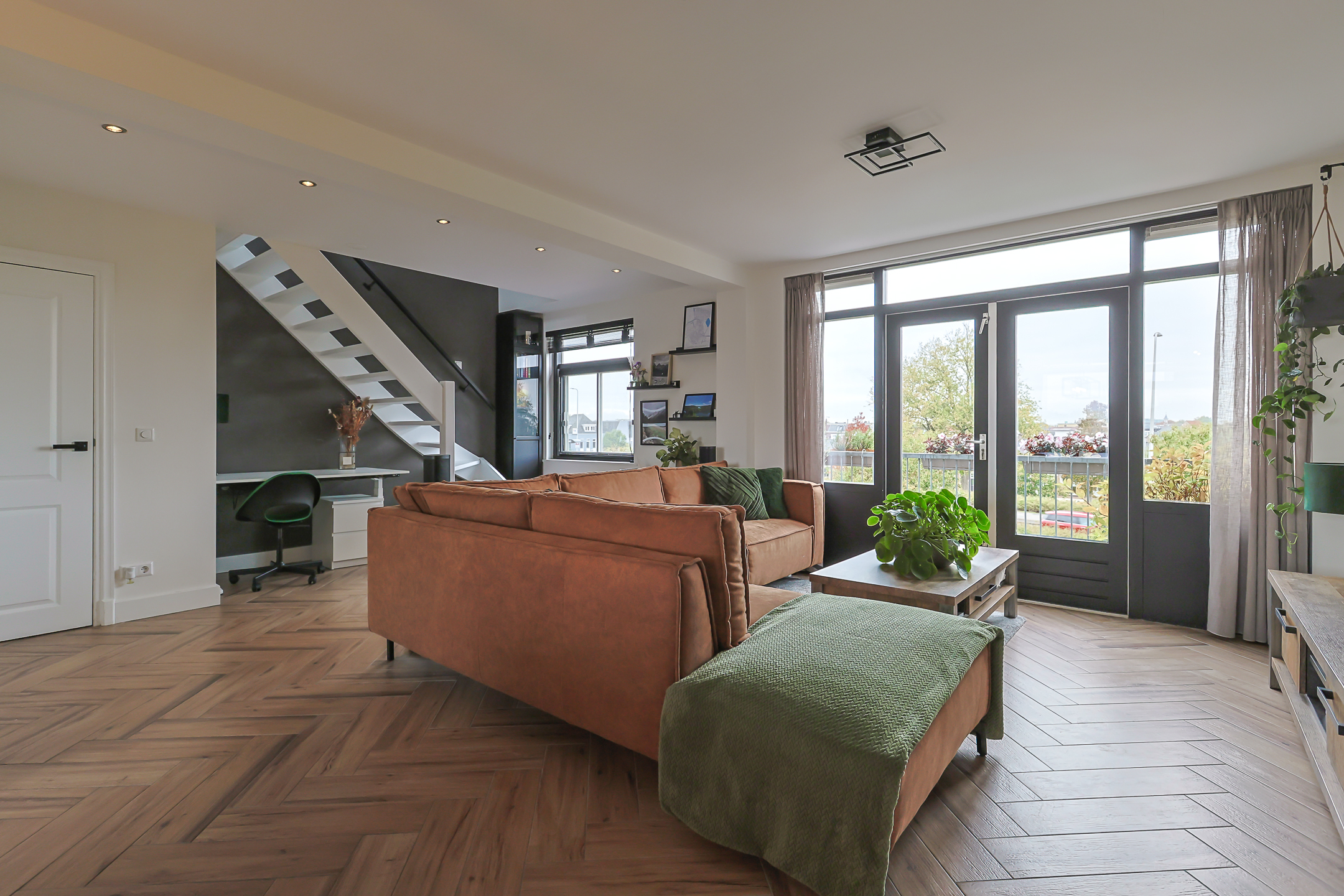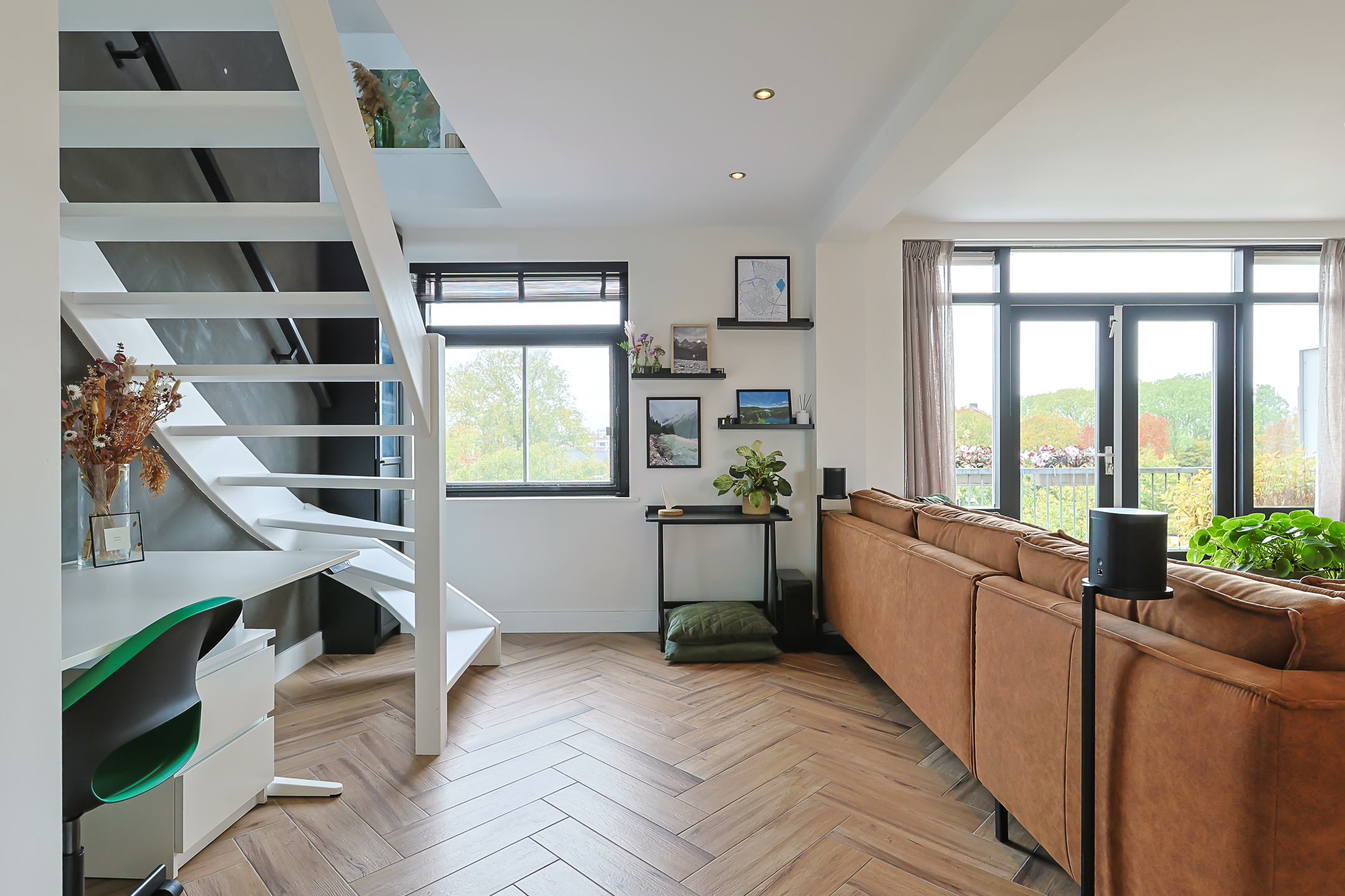 - Via openslaande deuren kom je vanuit de woonkamer op het eerste balkon aan de voorzijde van de woning. Vanuit hier kijk je uit over de Blijenbergstraat en de Koningin Julianabrug