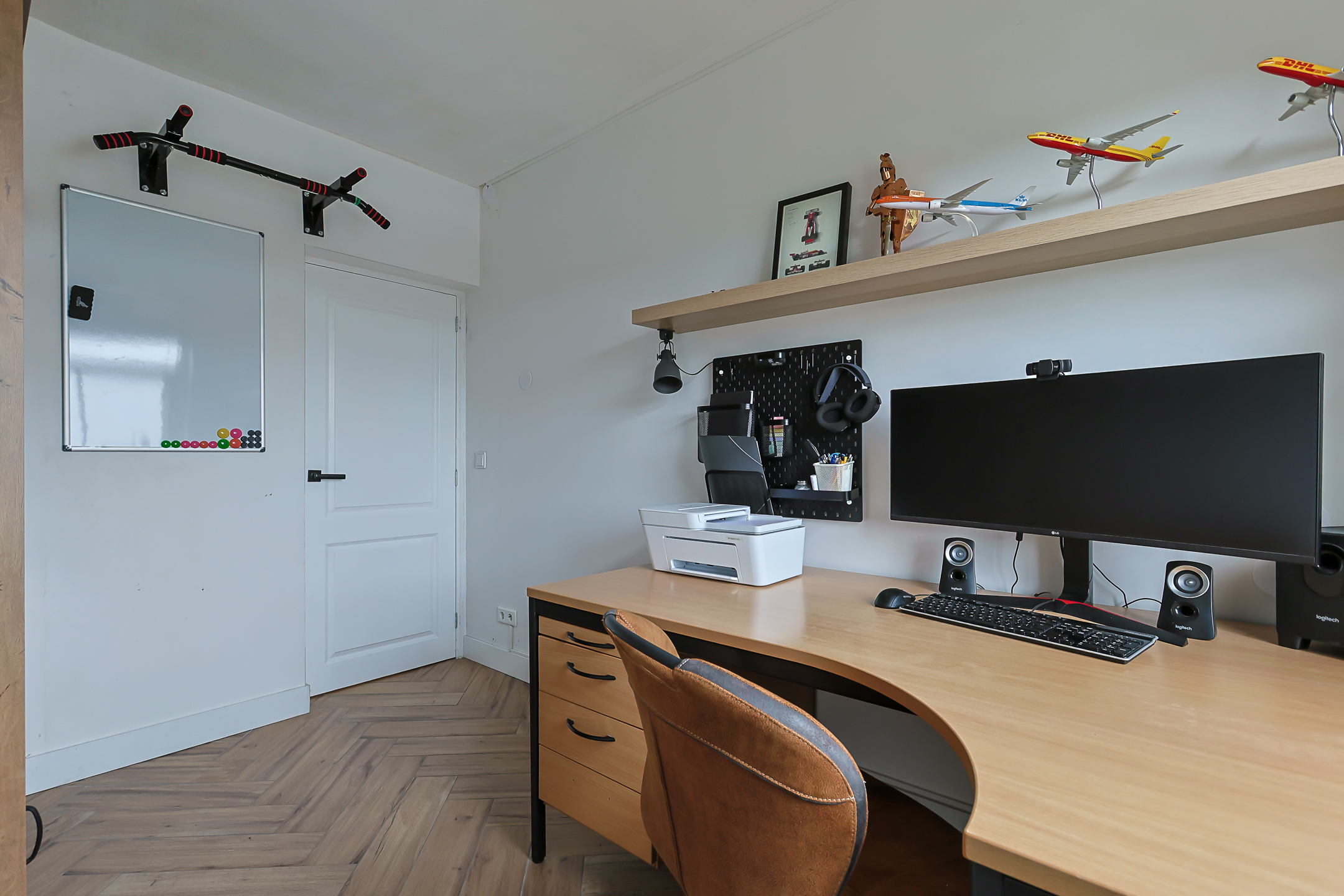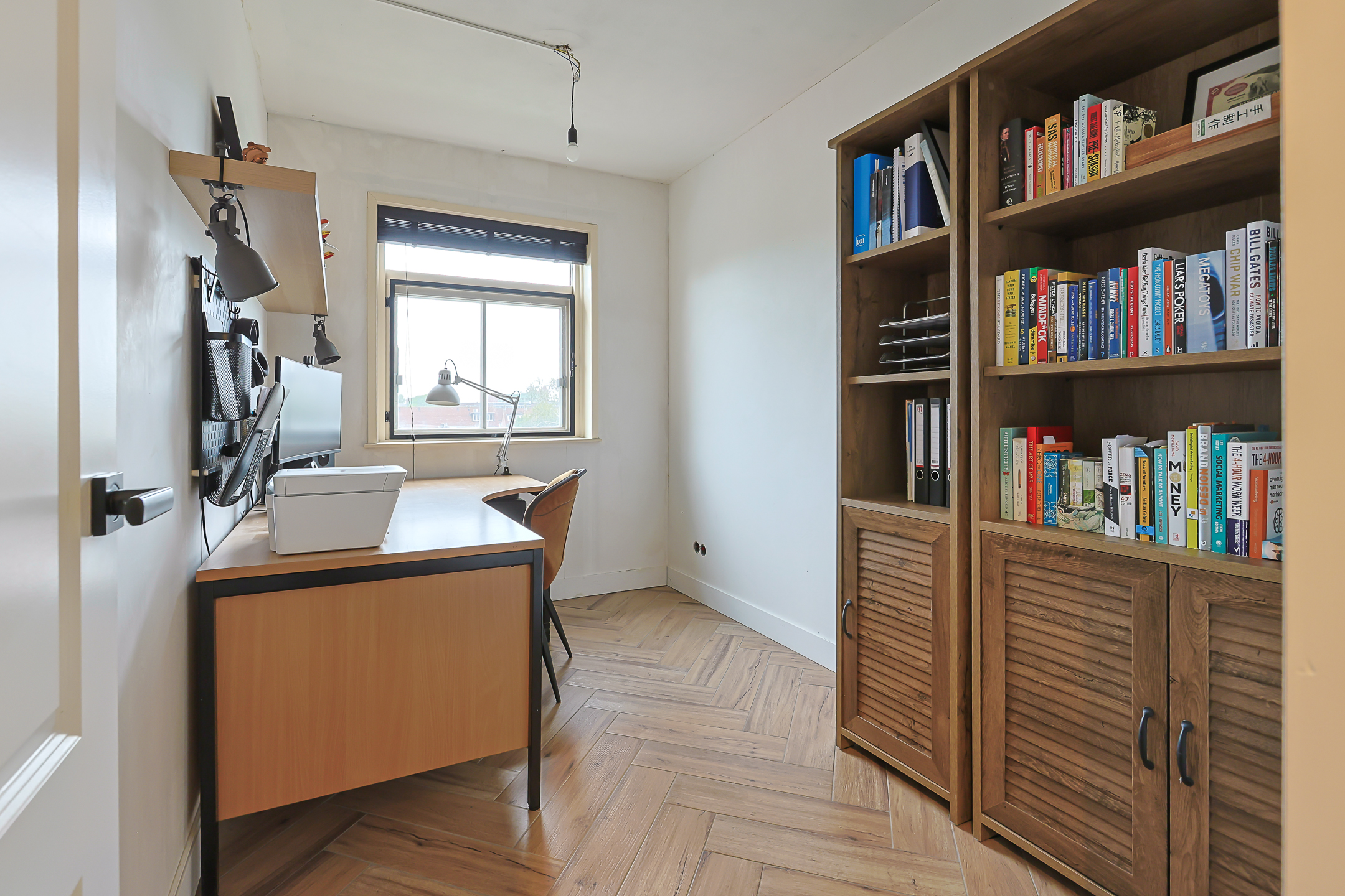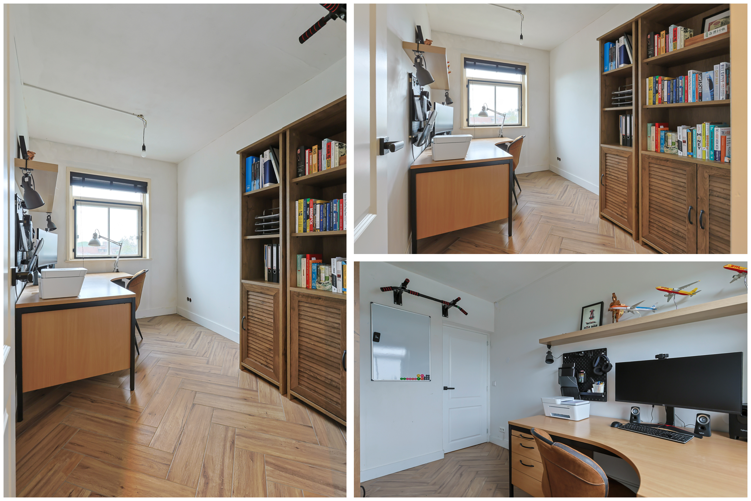 - De slaapkamer op de eerste woonlaag is netjes afgewerkt en biedt mogelijkheid voor een slaapkamer of kantoorruimte. Momenteel is de kamer in gebruik als thuiskantoor