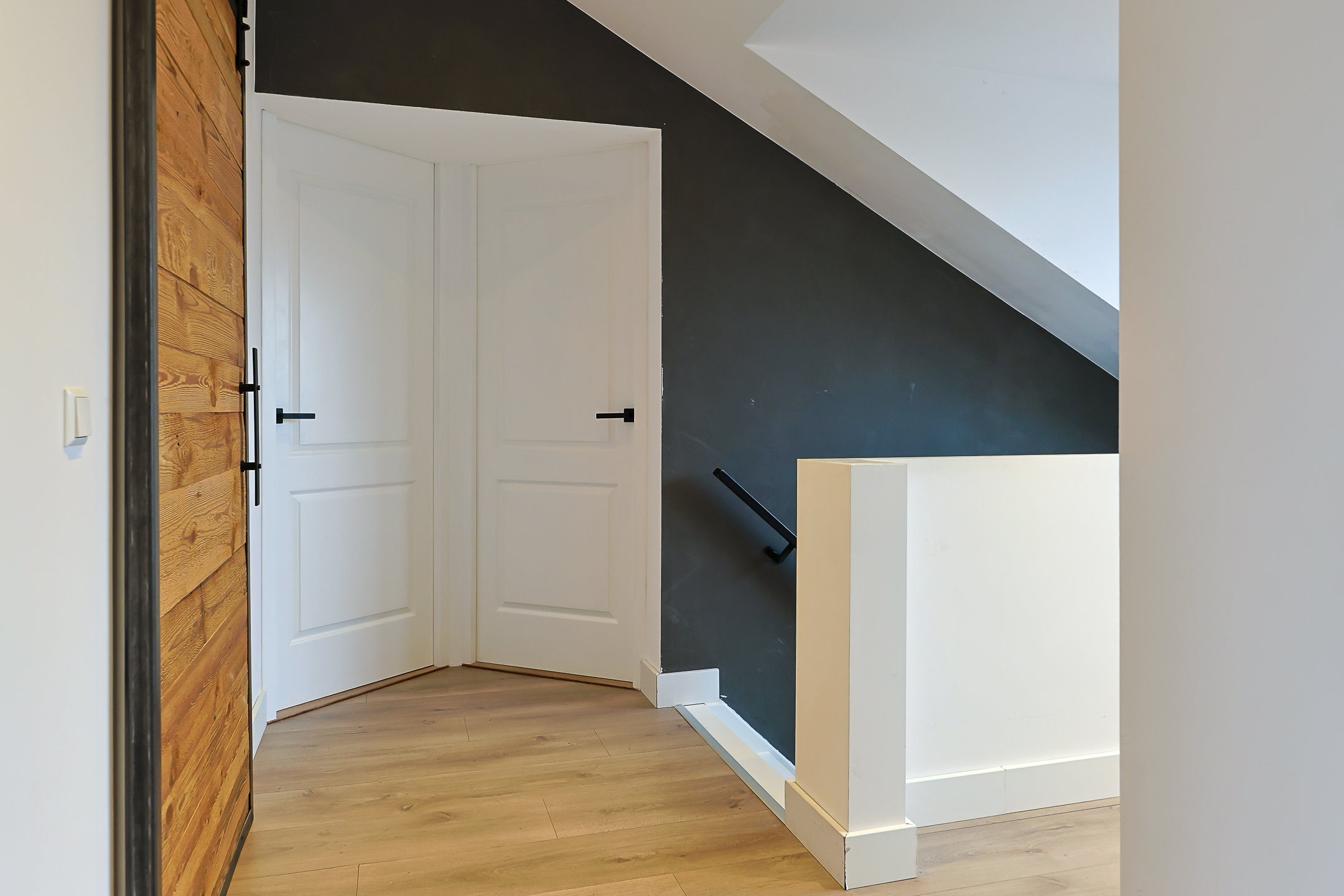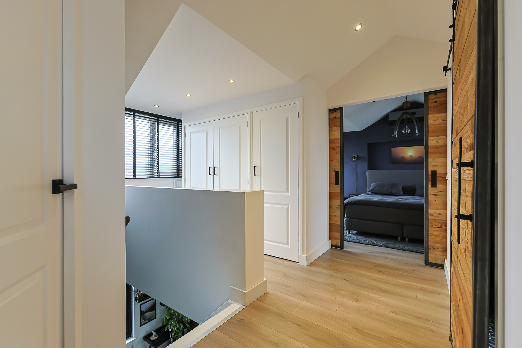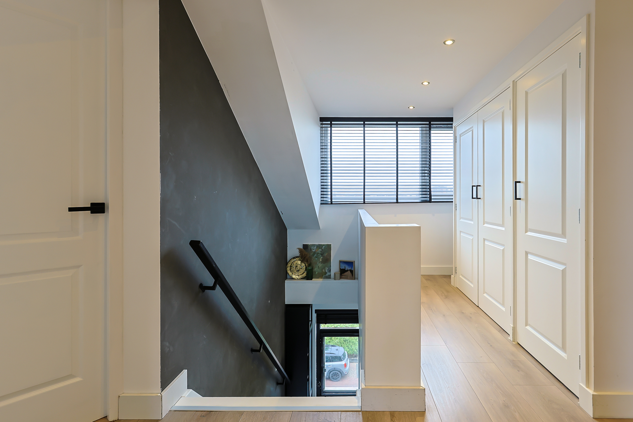 - Via de trap in de woonkamer kom je op de ruime overloop van de tweede woonlaag. Deze verdieping is aan voor- en achterzijde voorzien van woningbrede dakkappellen, waardoor ook de overloop profiteert van veel lichtinval!