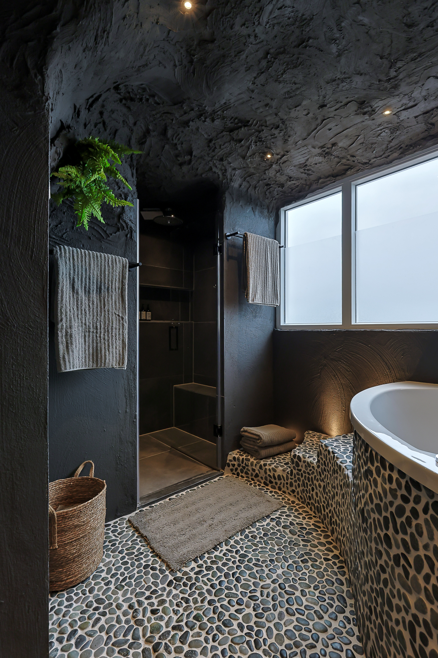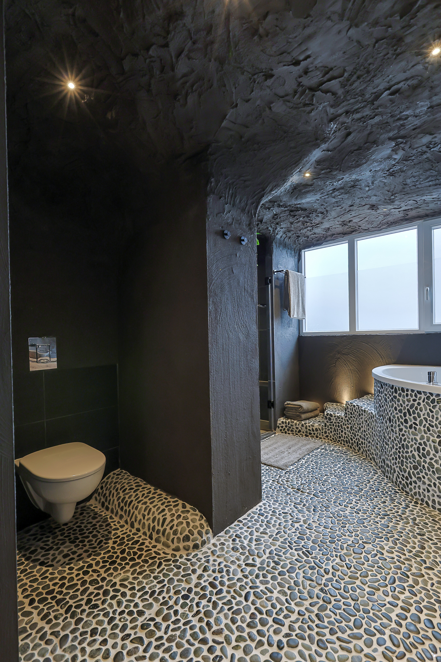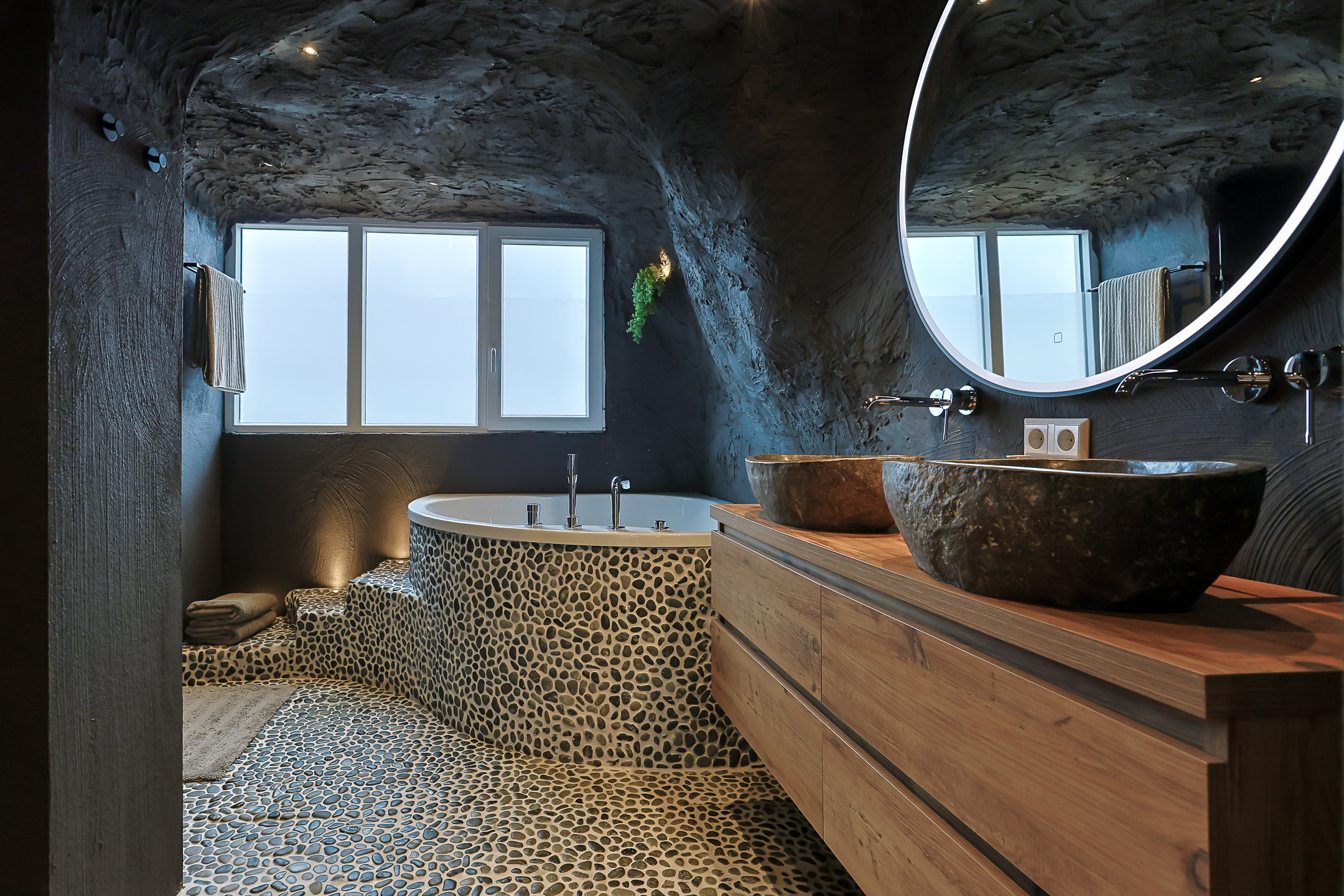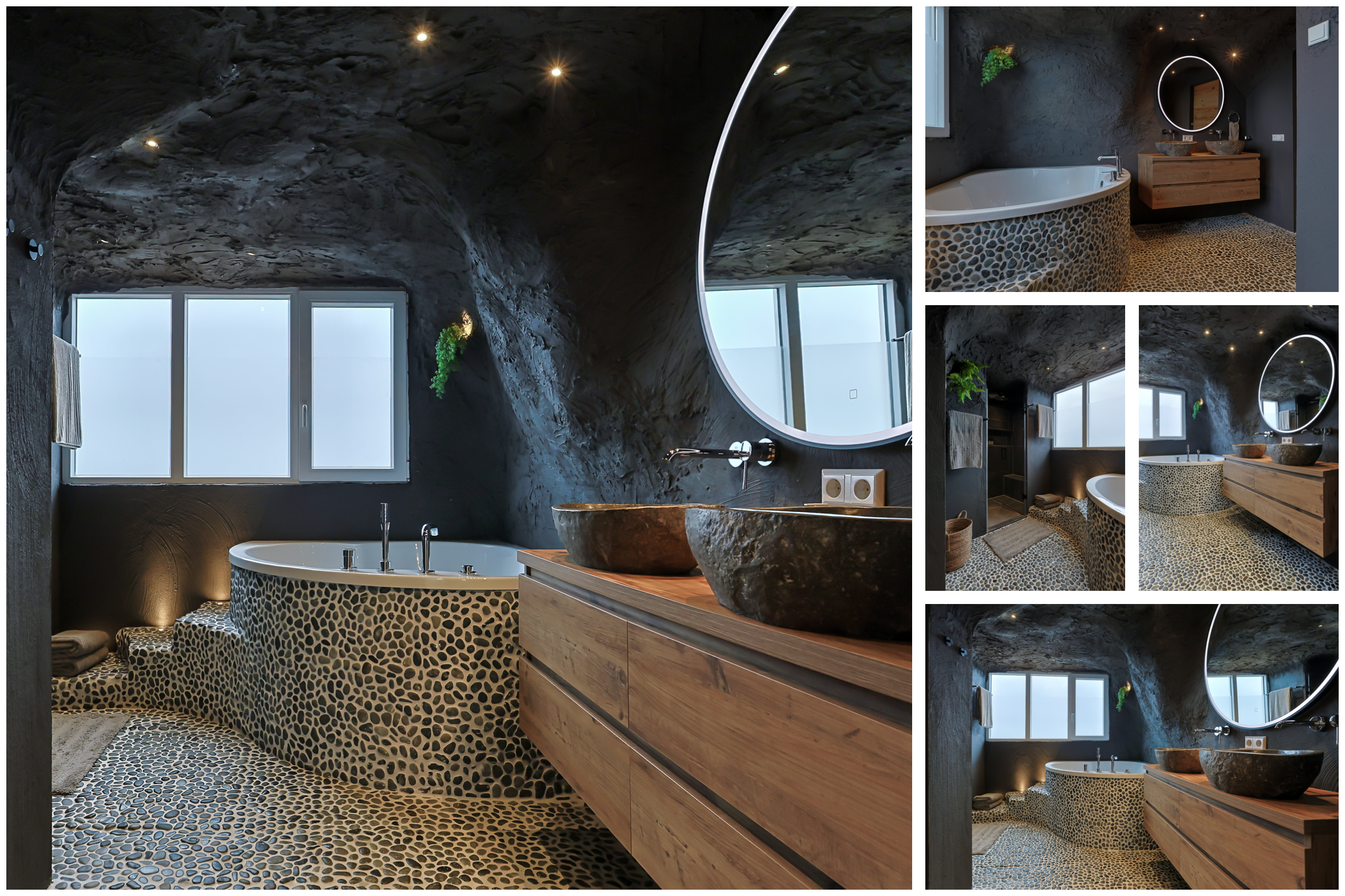 - De royale badkamer is uniek en heeft een serene uitstraling voor het ultieme spa gevoel! De badkamer is ruim opgezet met een groot hoekbad, dubbele wastafel op houten meubel, wandtoilet, een aparte inloopdouche met dubbele douchekop én handdouche. Bovendien is er een MOOIJ zitje in de douche te vinden!