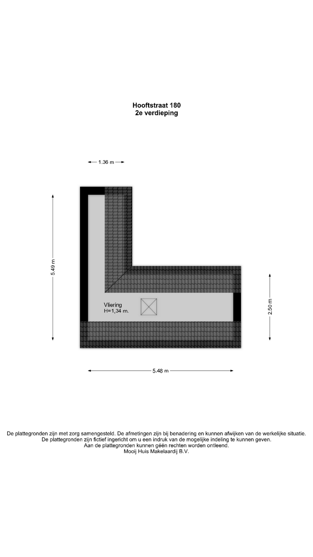 - Voor extra opbergruimte is er een vliering aanwezig. Deze is te betreden via het luik in het plafond van de overloop