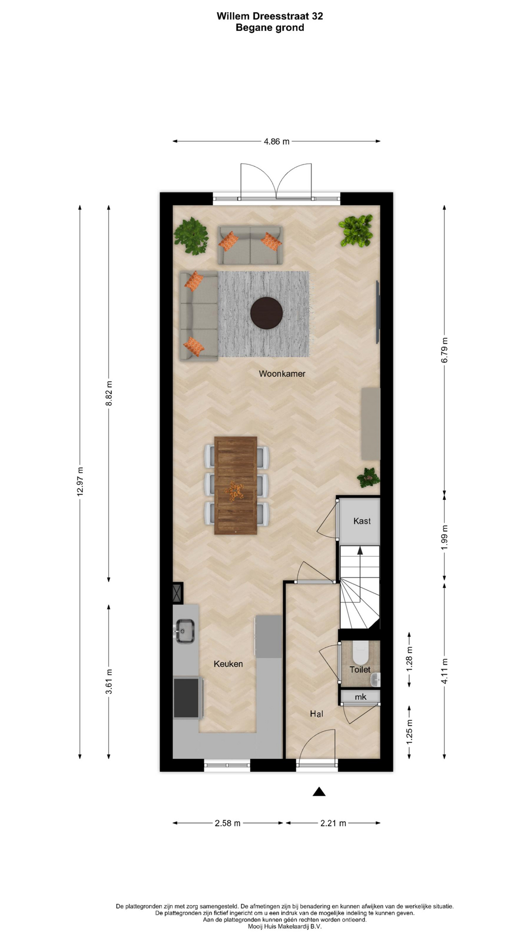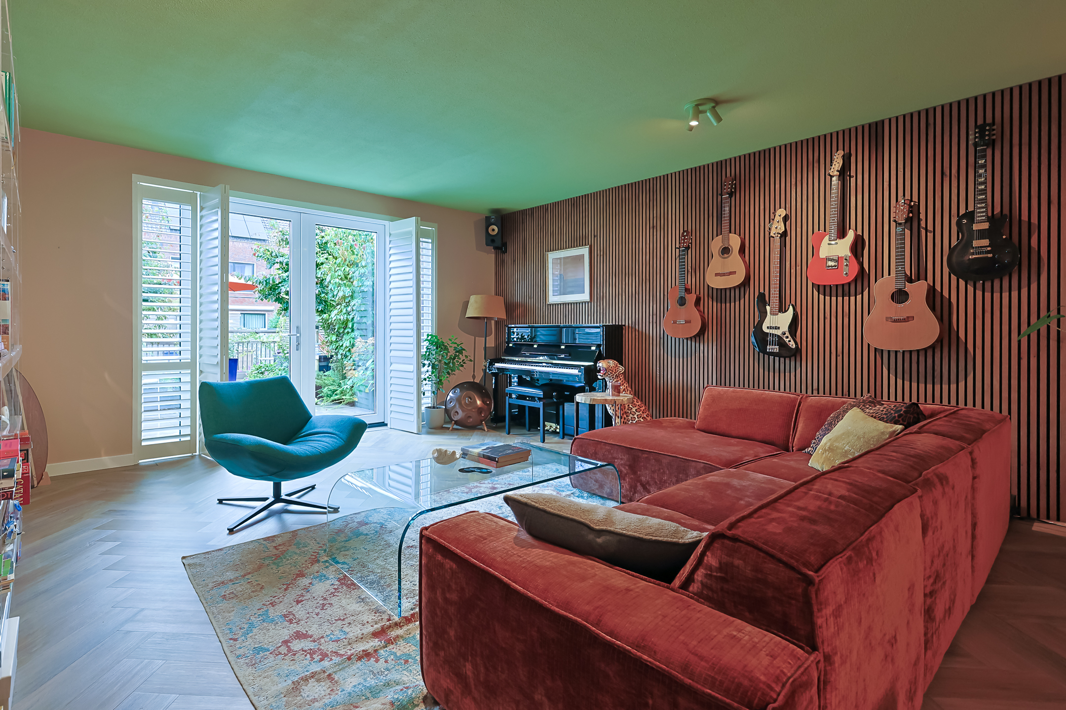 - De royale woonkamer beschikt over een vaste trapkast en biedt voldoende ruimte voor een gezellige zit- en eethoek