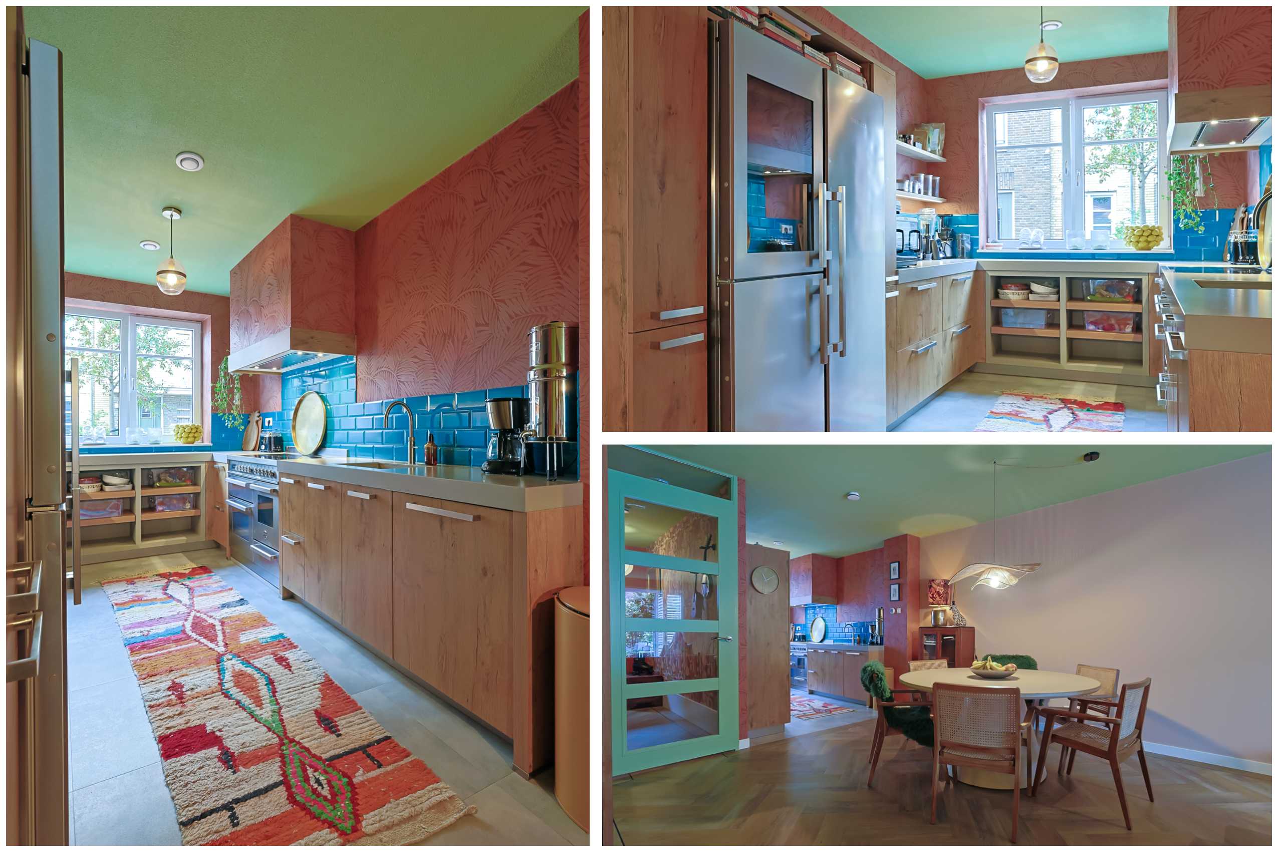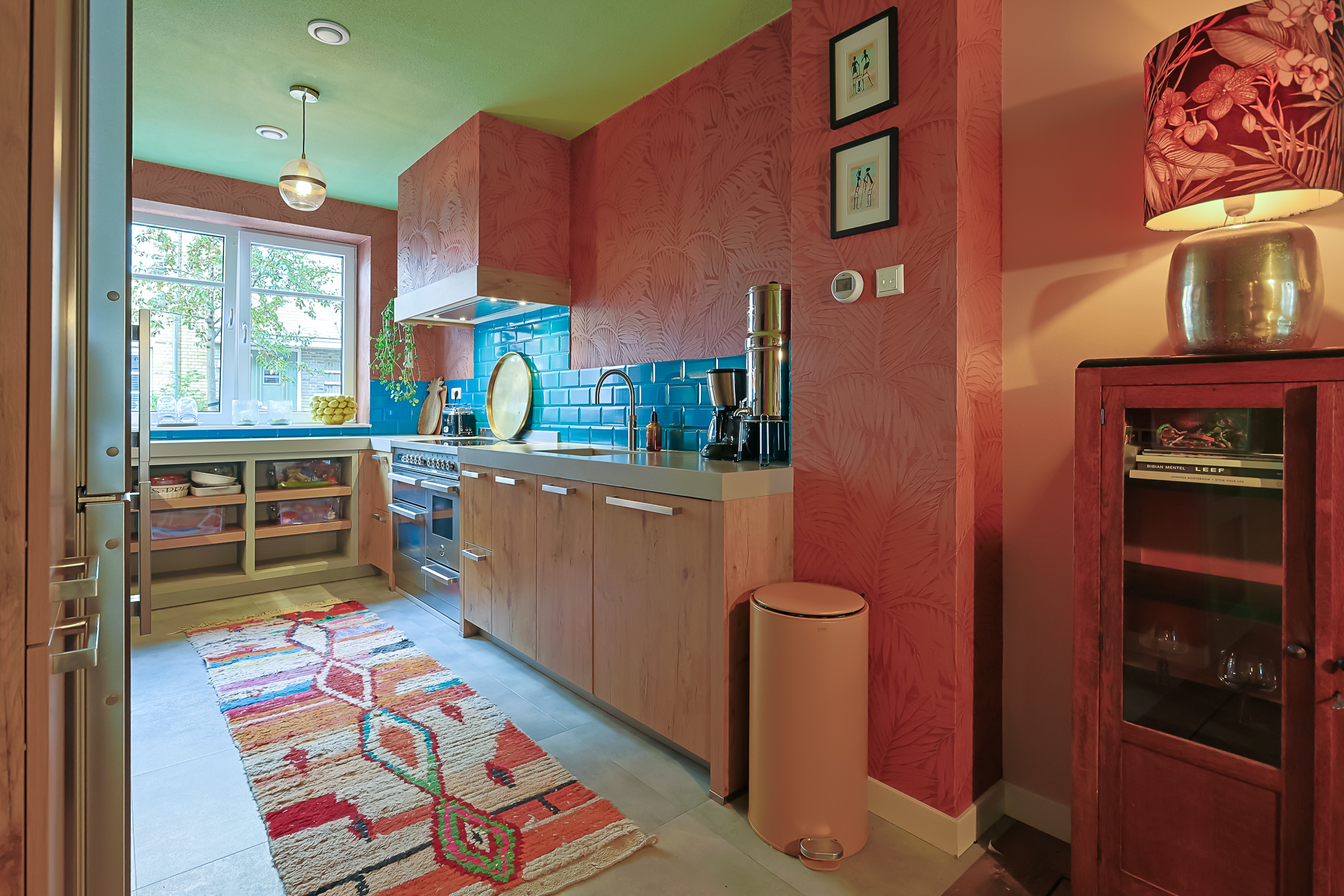 - De U-vormige keuken beschikt over veel bergruimte en diverse luxe inbouwapparatuur, waaronder een vaatwasser, Quooker, extra stille afzuigkap en inductiefornuis. Dit fornuis is uniek vanwege de bediening van de inductiekookplaat middels draaiknoppen. Tevens beschikt het fornuis over maar liefst twee ovens, grill en warmhoudplaat. Separaat van de inbouwapparatuur beschikt de woning over een apothekerskast en een dubbele Amerikaanse koel-/vriescombinatie (ter overname) met wijnkoelkast en ice-dispenser