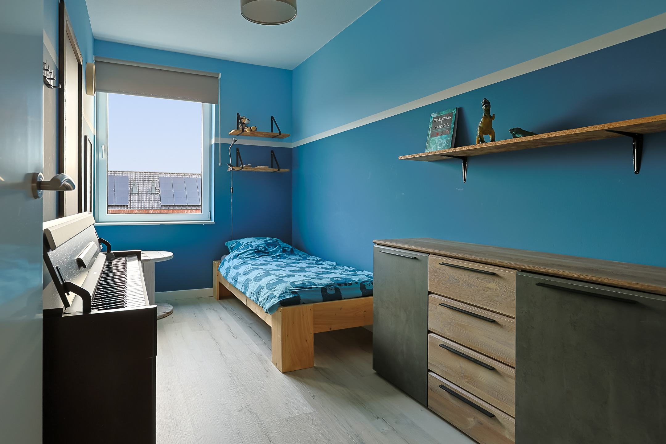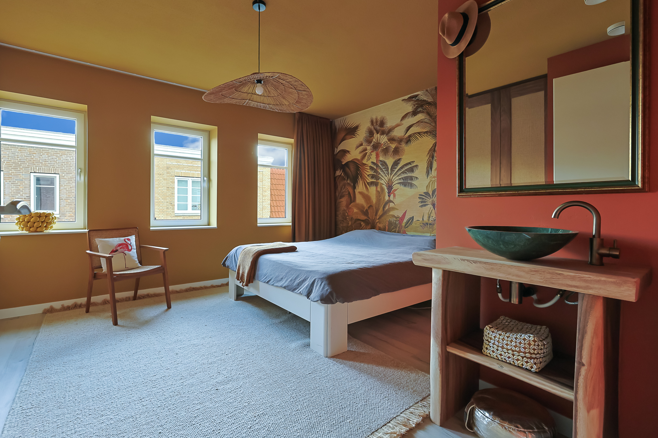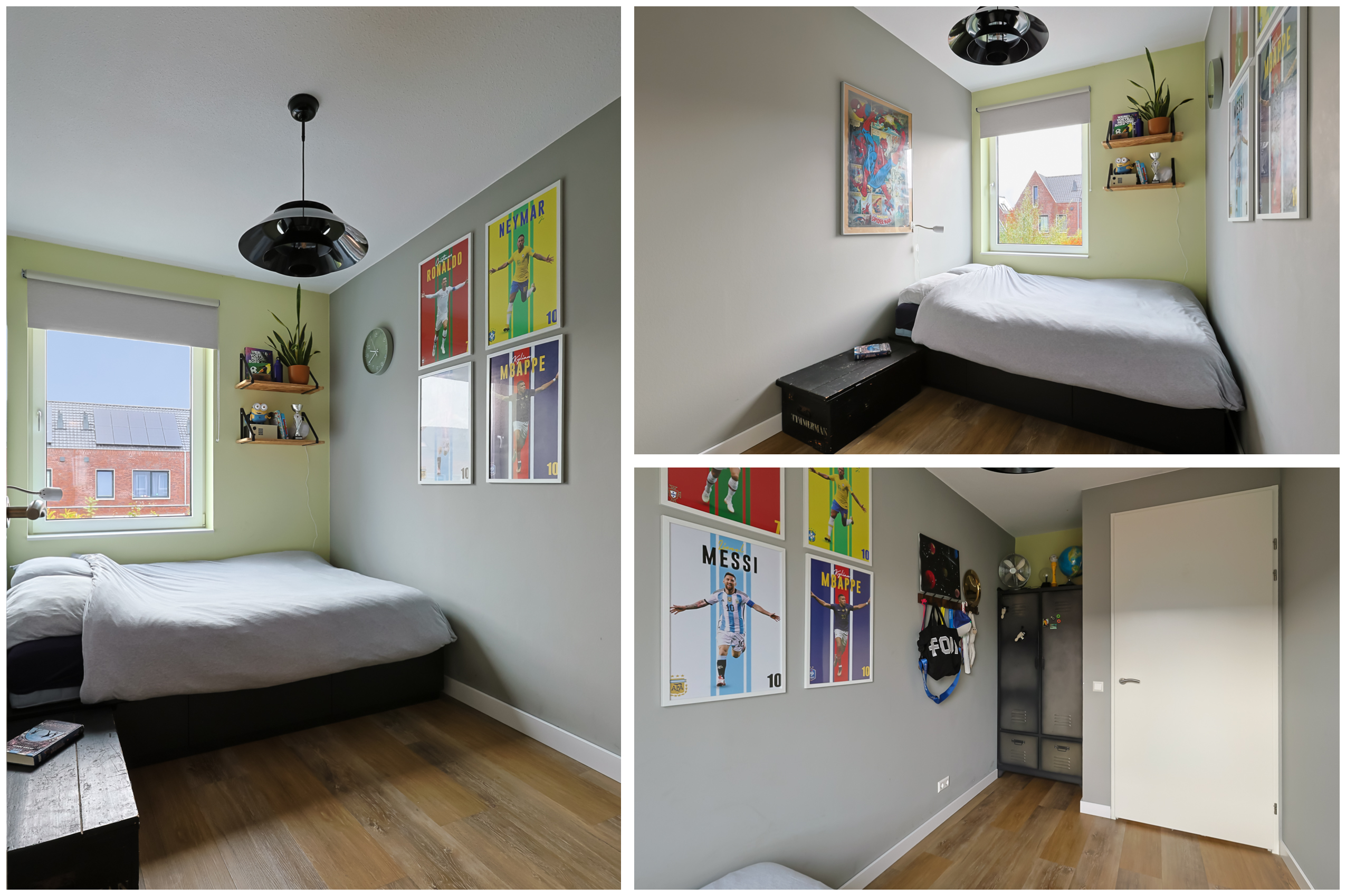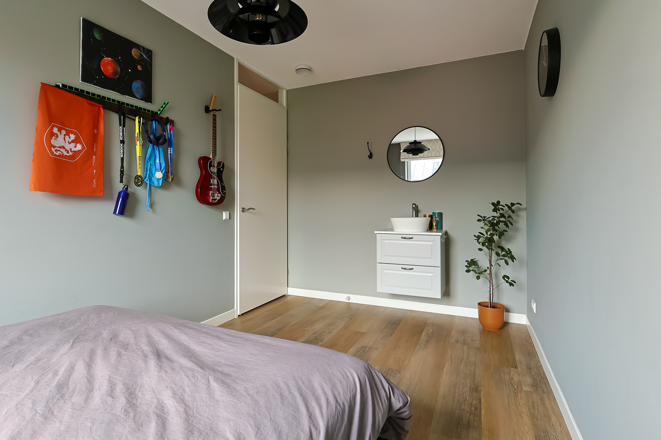 - Alle slaapkamers zijn strak afgewerkt met een nette laminaatvloer, waarvan één met wastafel. Dankzij de grote raampartijen en hoge plafonds zijn alle slaapkamers heerlijk licht.