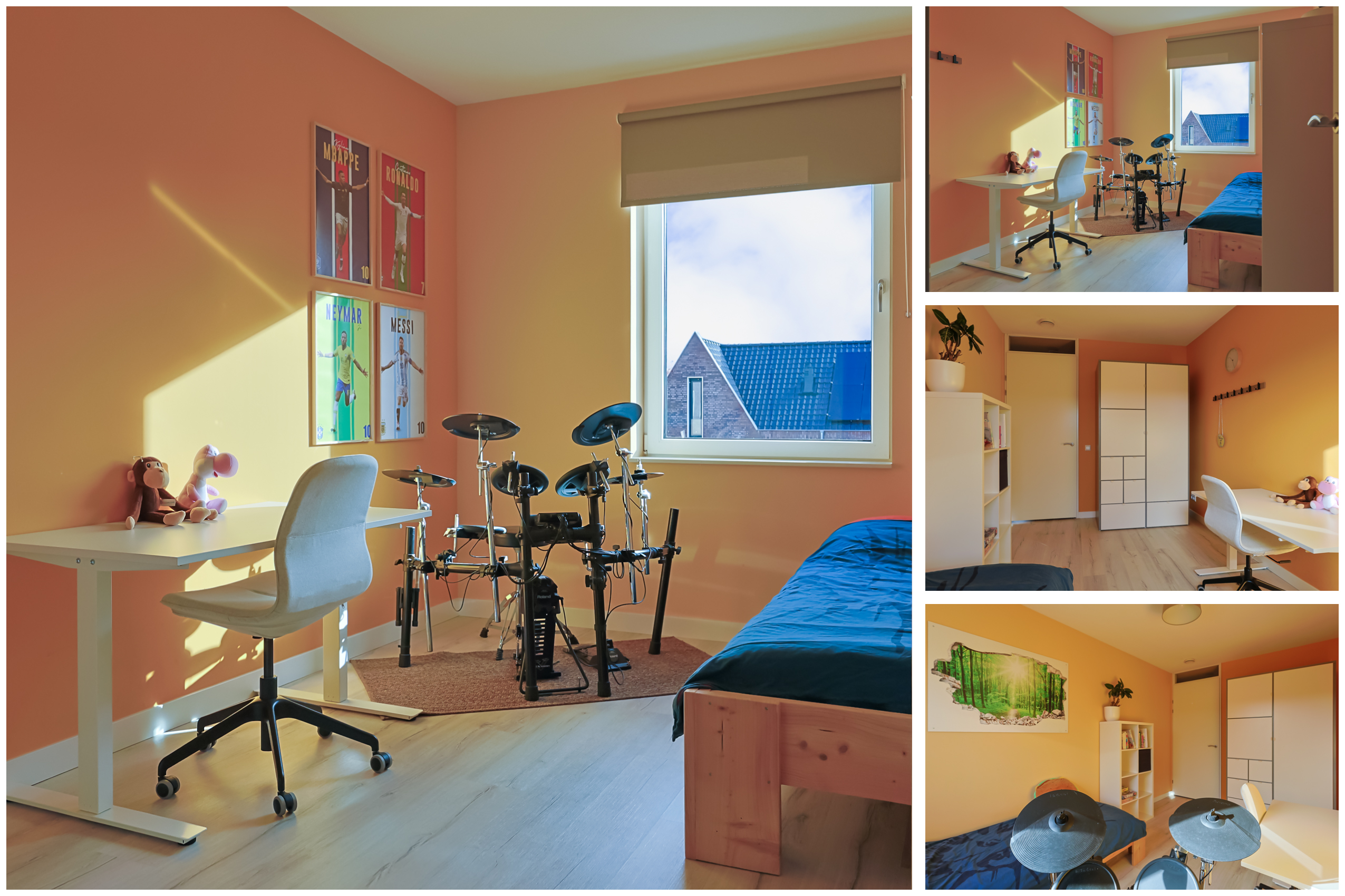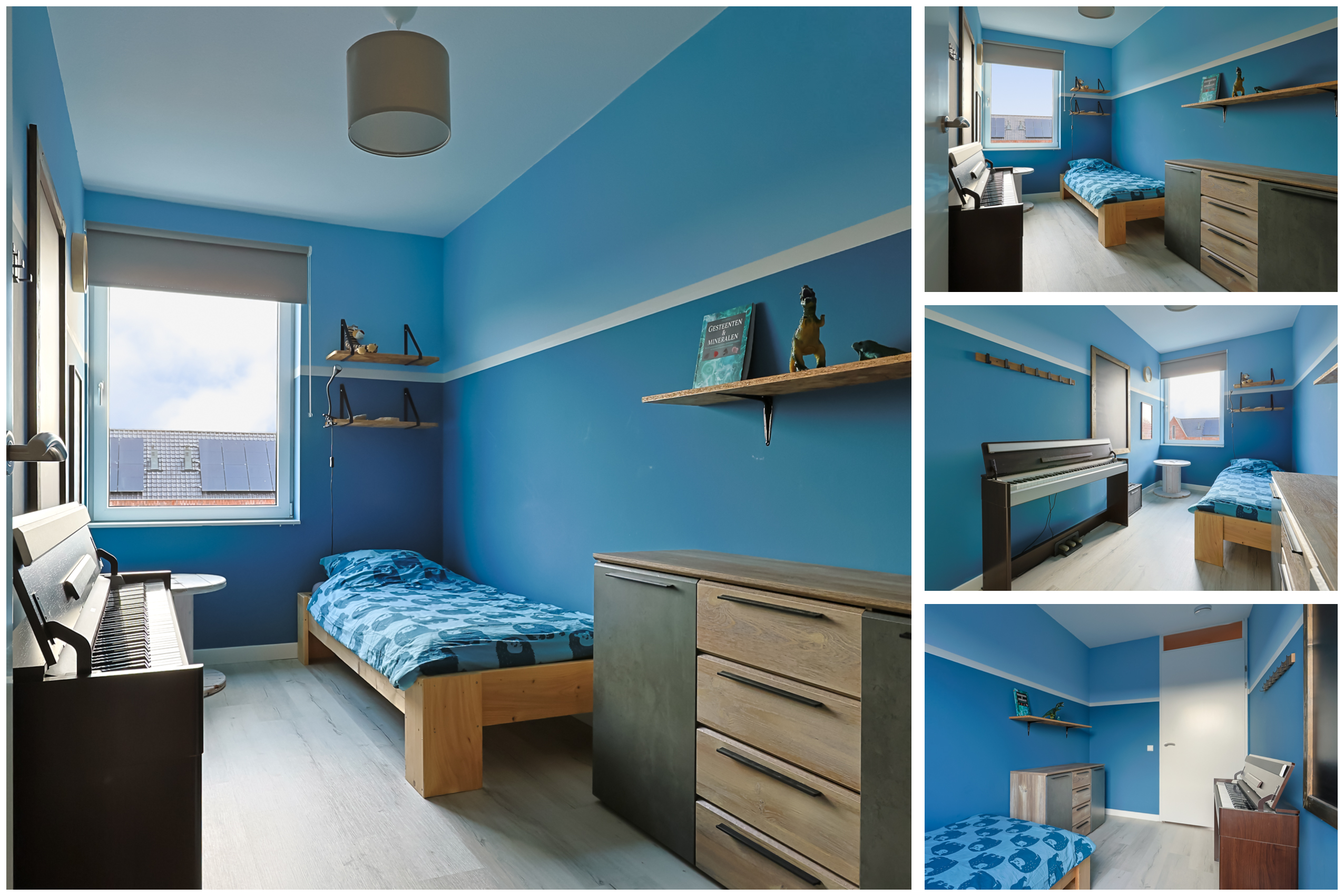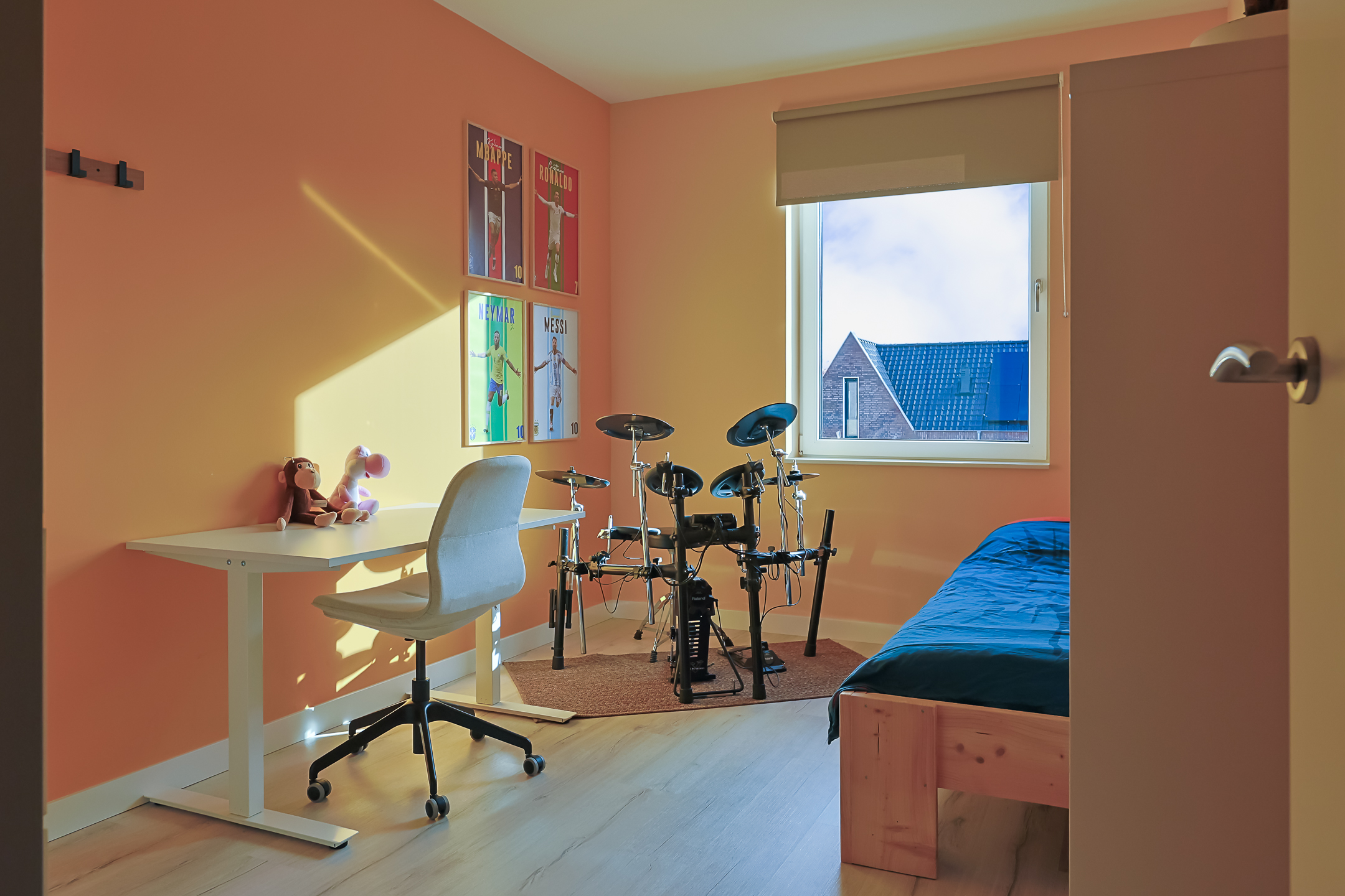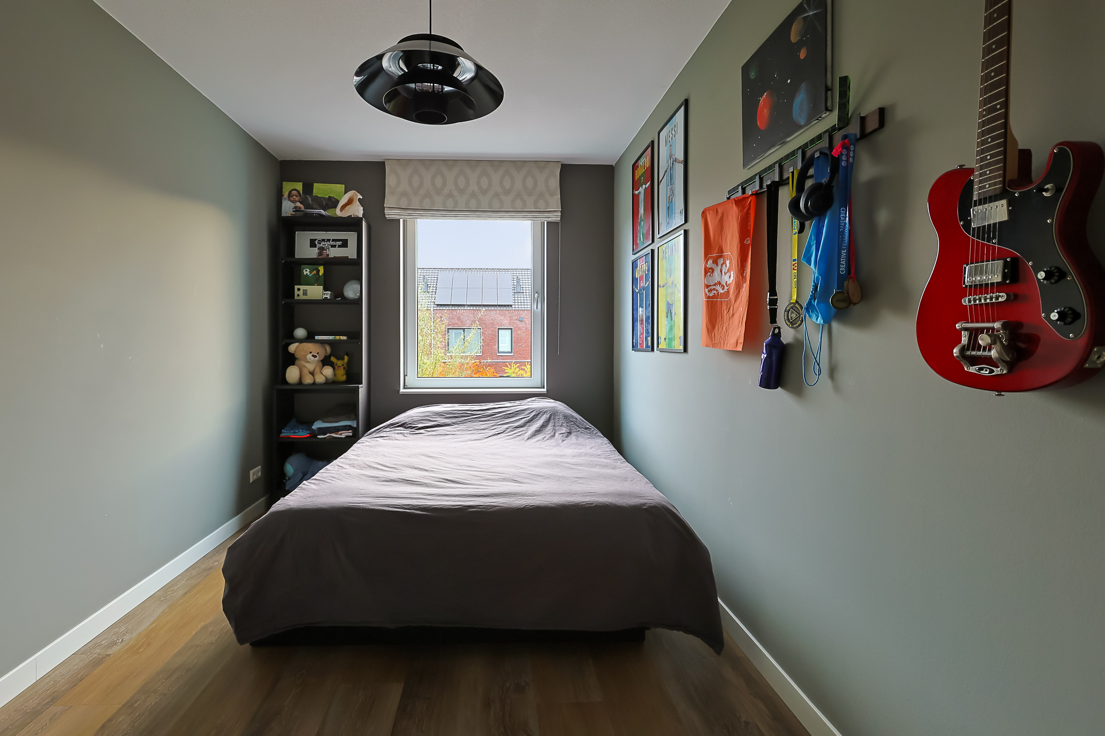 - Alle slaapkamers zijn strak afgewerkt met een nette laminaatvloer, waarvan één met wastafel. Dankzij de grote raampartijen en hoge plafonds zijn alle slaapkamers heerlijk licht.