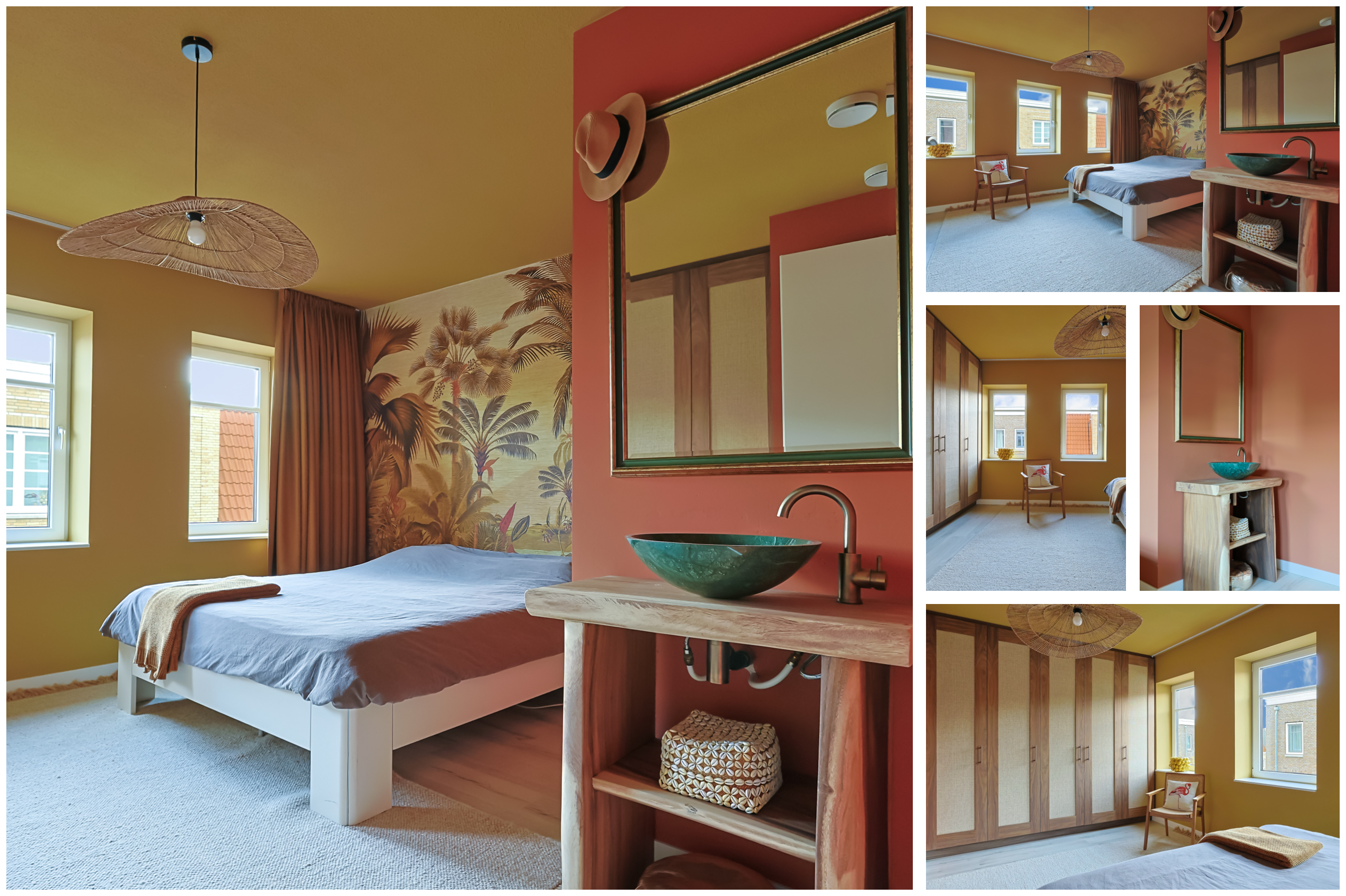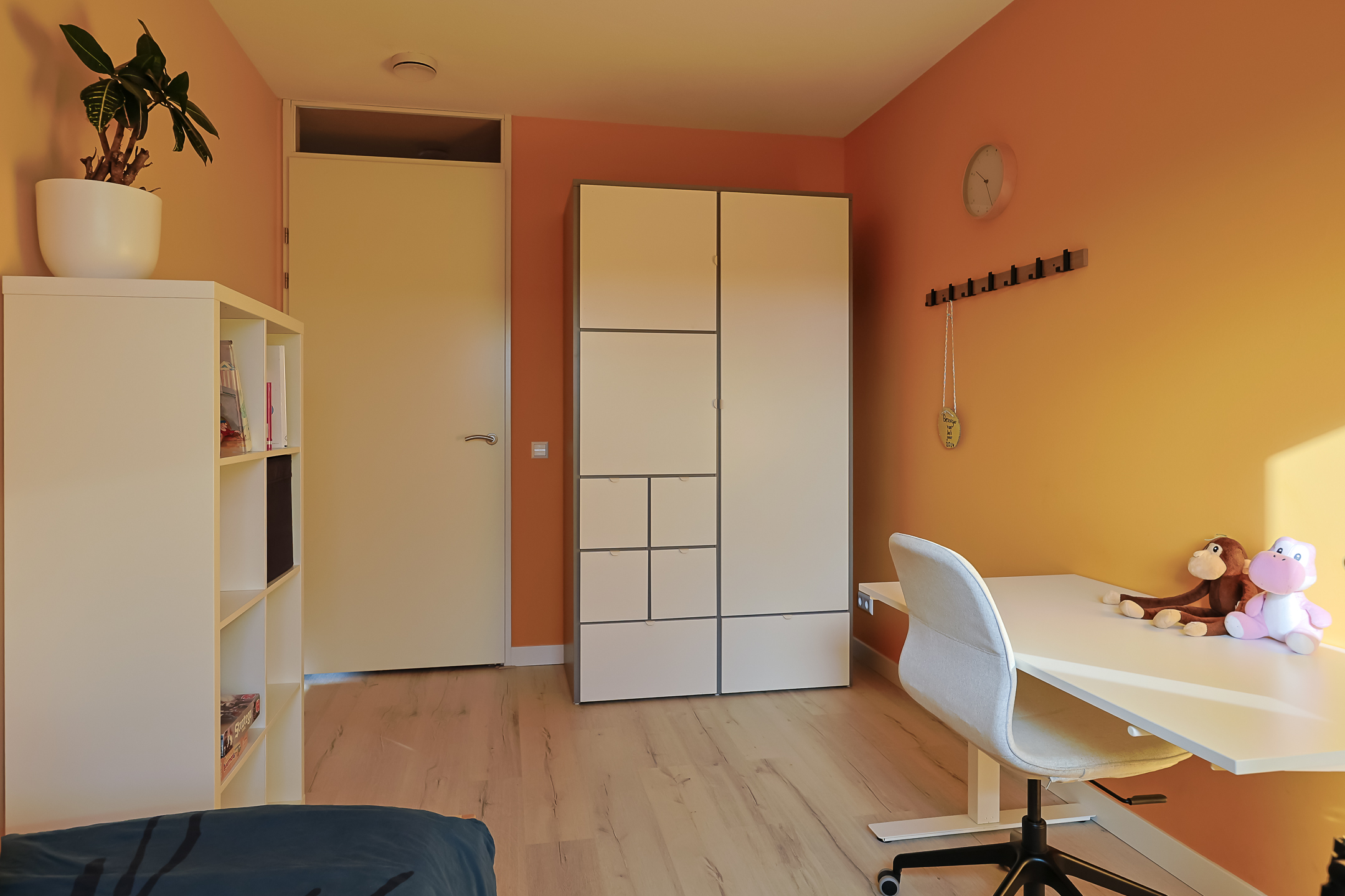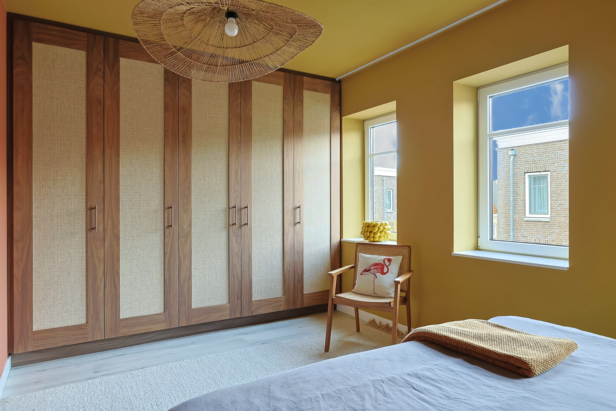 - De grootste slaapkamer is voorzien van een wastafel en kamerbrede kastenwand van écht hout en webbing (2025, ter overname). Hiermee is de slaapkamer een kant en klare en praktische inrichtte ruimte!