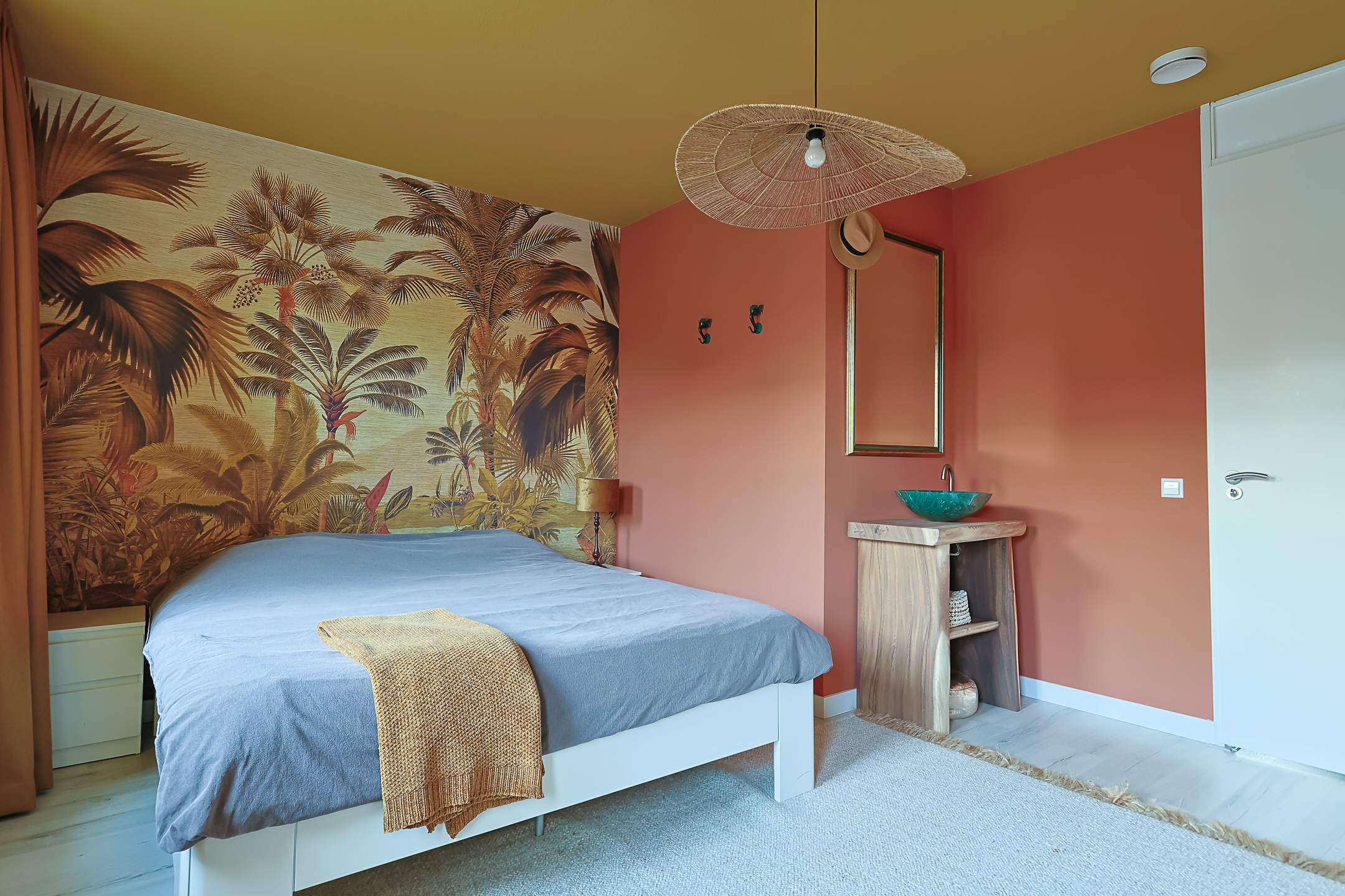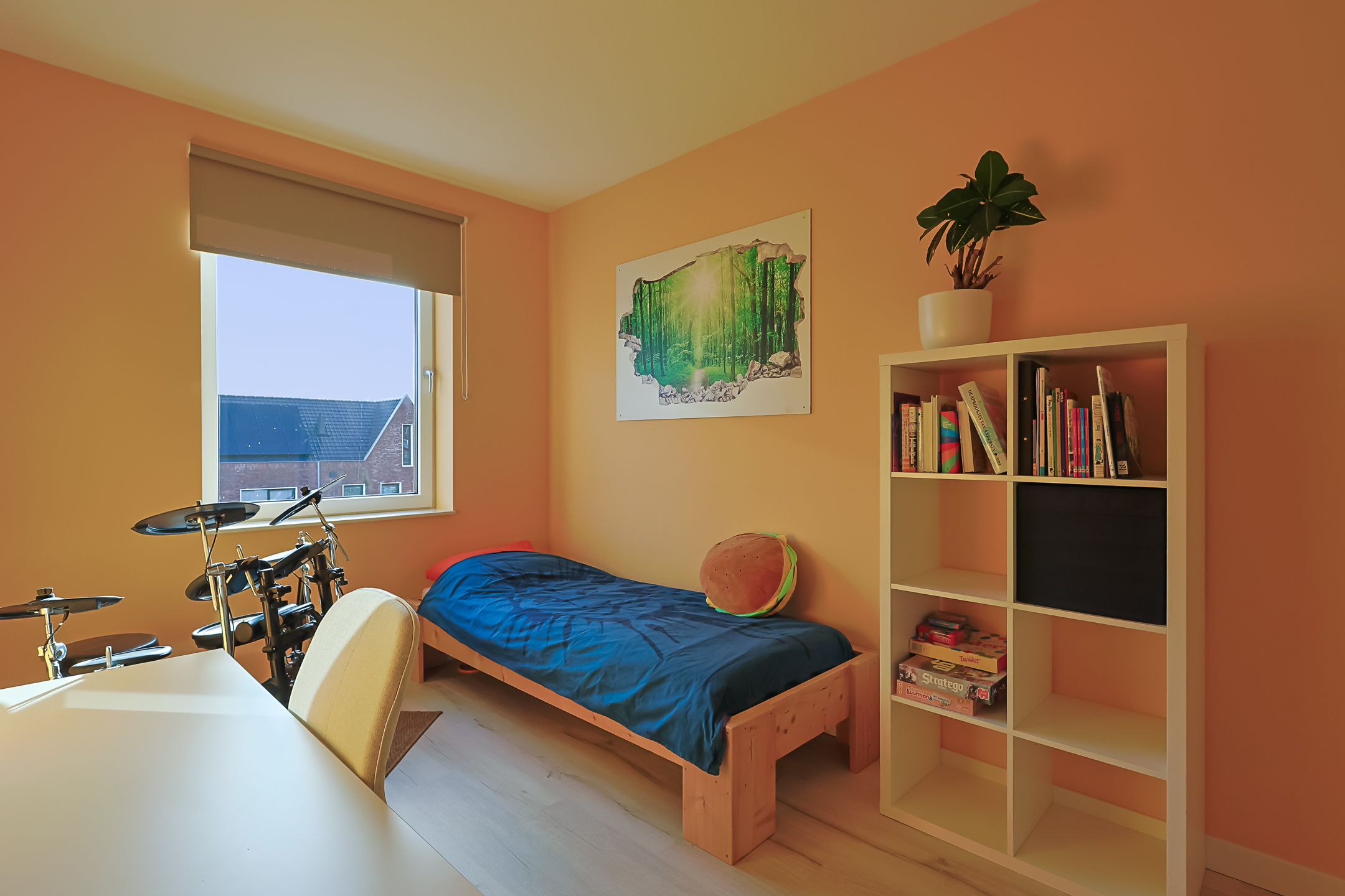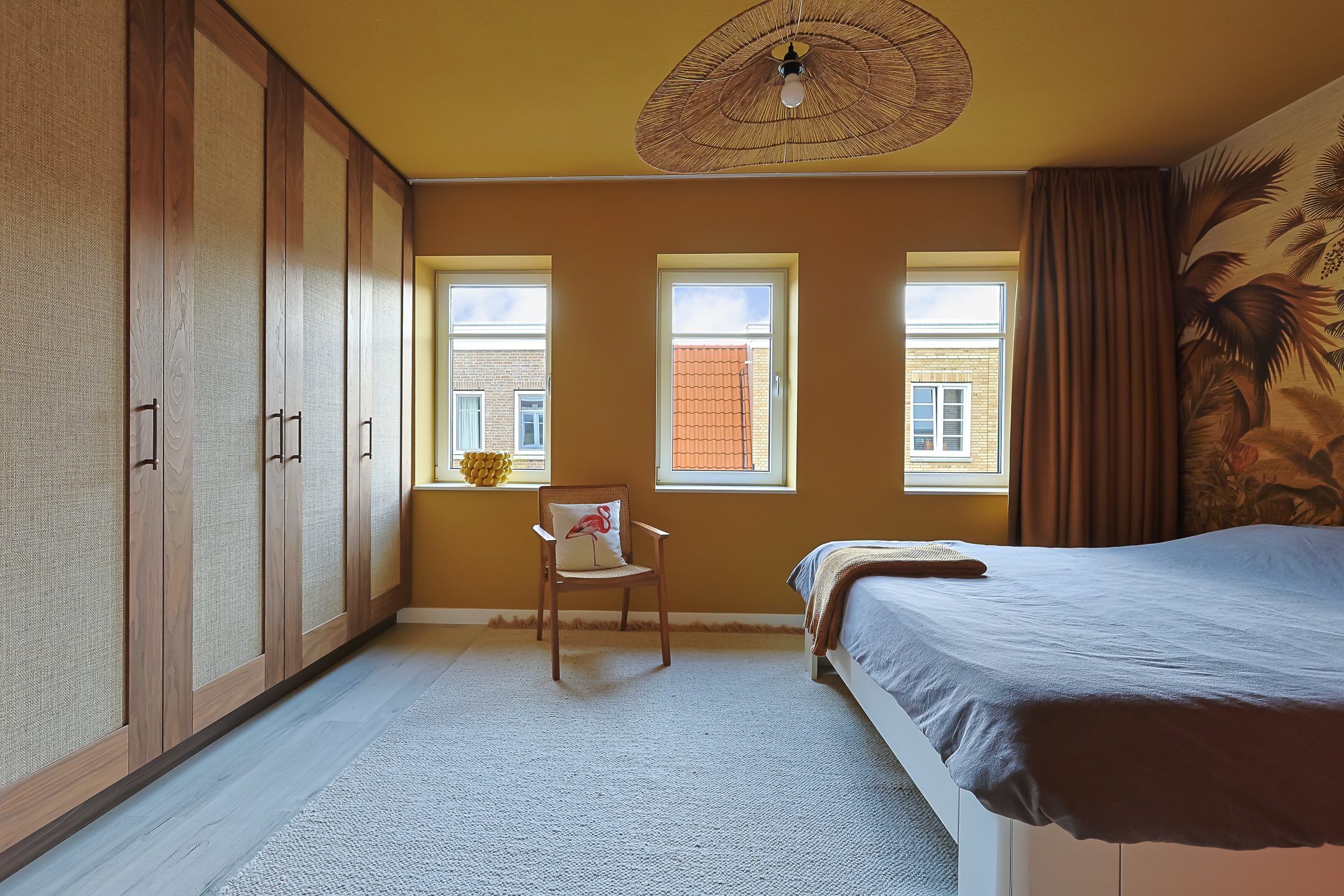 - De grootste slaapkamer is voorzien van een wastafel en kamerbrede kastenwand van écht hout en webbing (2025, ter overname). Hiermee is de slaapkamer een kant en klare en praktische inrichtte ruimte!
