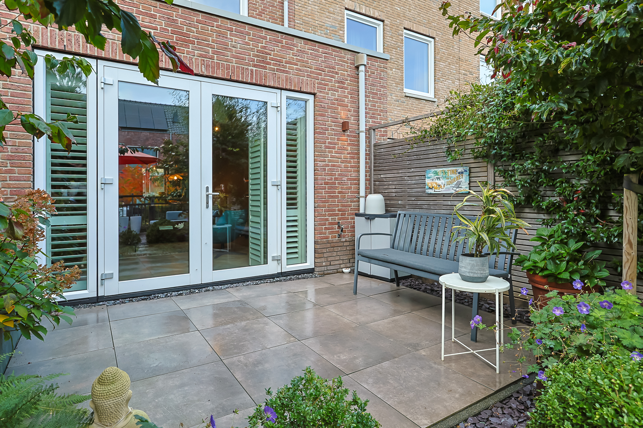 - De achtertuin is gelegen op het oosten, waardoor je ’s ochtends kunt genieten van de zon en het in de middag en avond heerlijk koel blijft.
