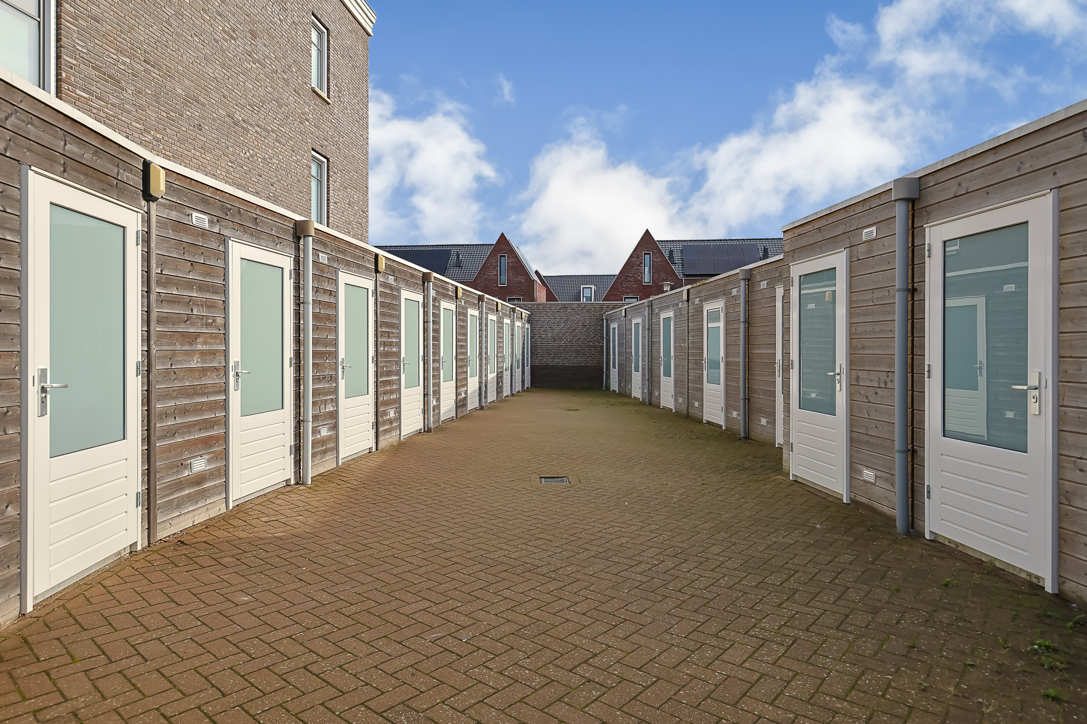 - Er is een eigen parkeerplaats op gezamenlijk terrein (achter een hek) beschikbaar. Op dit terrein bevindt zich ook nog een externe berging met veel ruimte voor bijvoorbeeld fietsen of gereedschap.