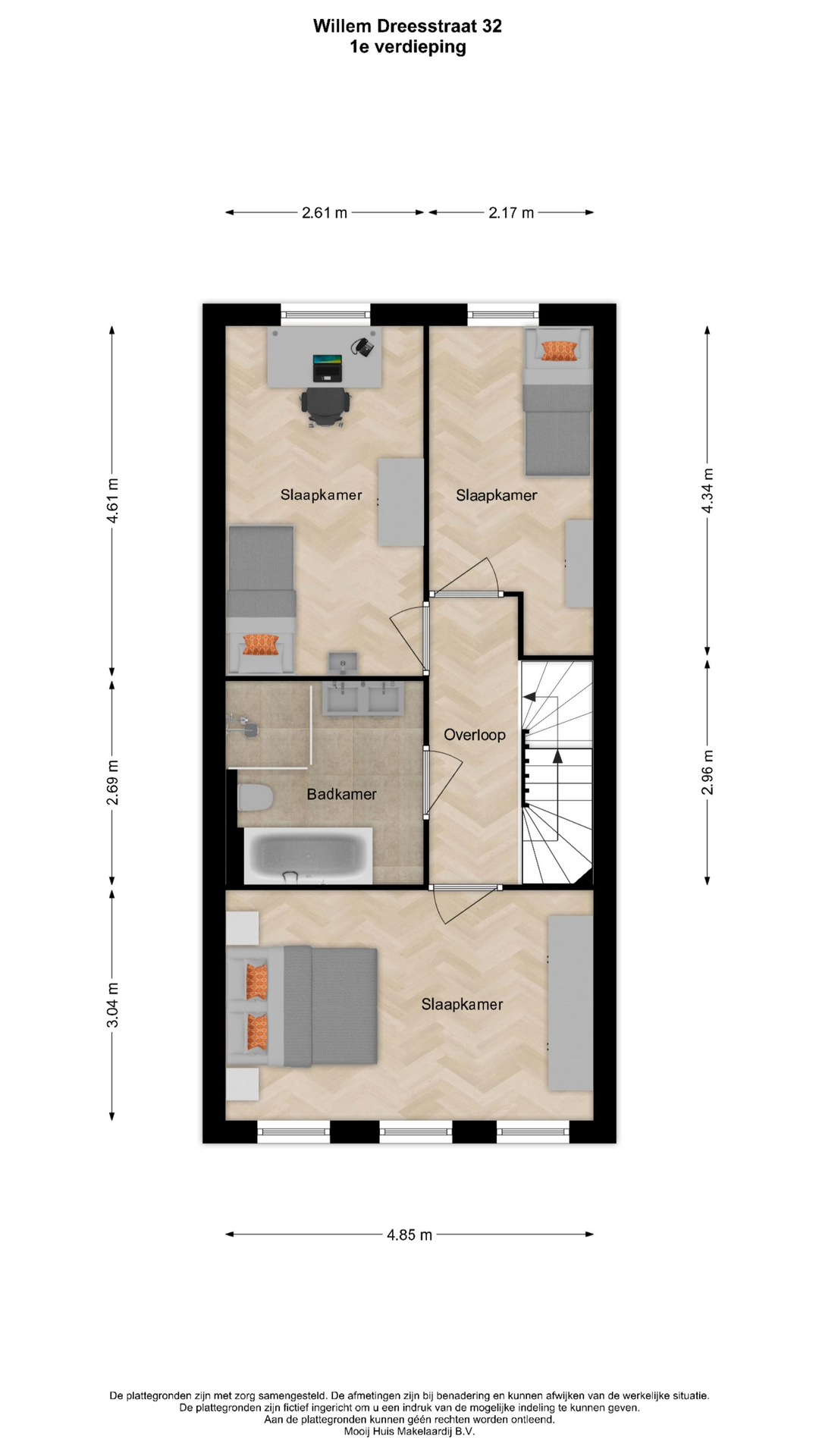 - Deze tweede verdieping is ook netjes afgewerkt met strak gestuukte wanden en een nette laminaatvloer met vloerverwarming