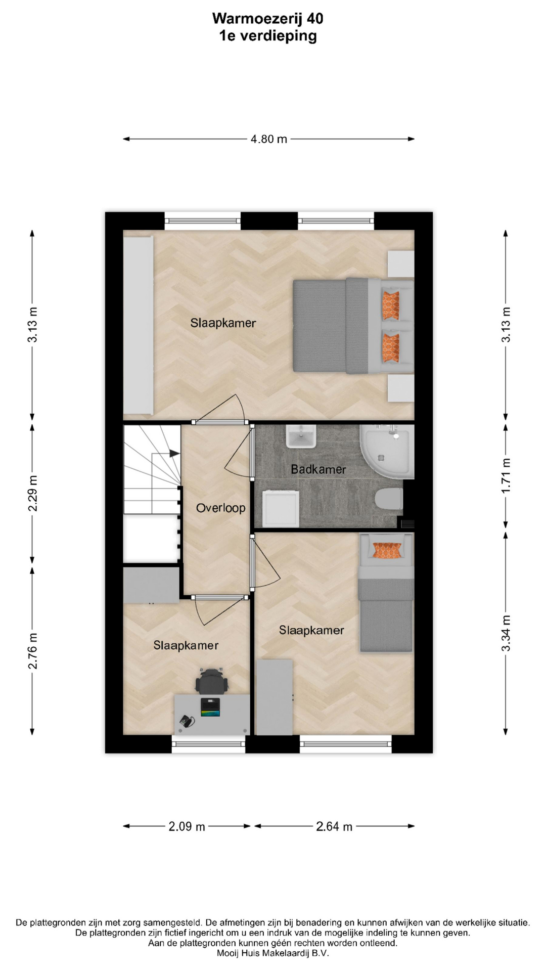 - Alle slaapkamers zijn voorzien van een nette afwerking met neutrale wanden en een lichte laminaatvloer. De kamers zijn allen van volwaardig formaat. De kleinste kamer is momenteel in gebruik als werkkamer