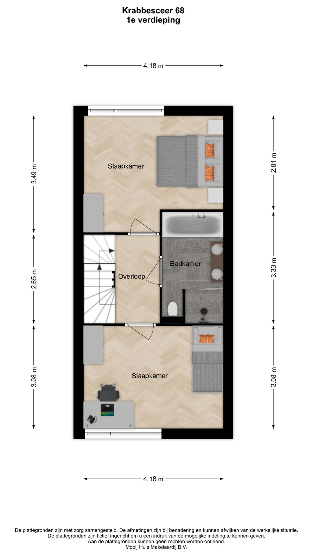 - Beide slaapkamers zijn netjes afgewerkt en volwaardig van formaat. Er ligt een doorgelegde PVC-vloer en de muren zijn netjes afgewerkt met o.a. schilderwerk en behang. Tevens is de gehele verdieping voorzien van comfortabele vloerverwarming