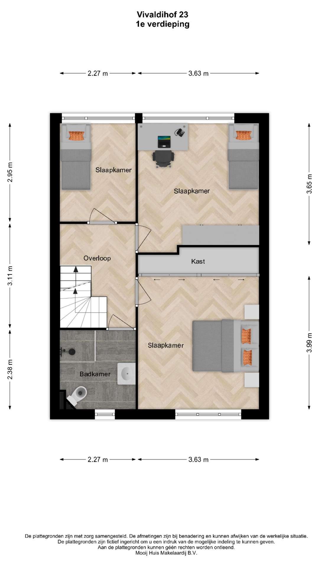 - Alle slaapkamers zijn volwaardig van formaat en wederom zijn de ruimtes heerlijk licht dankzij de grote raampartijen. De slaapkamer aan de voorzijde is tevens voorzien van een vaste kastenwand. De slaapkamer aan de achterzijde is voorzien van een vaste verdiepingshoge kast.